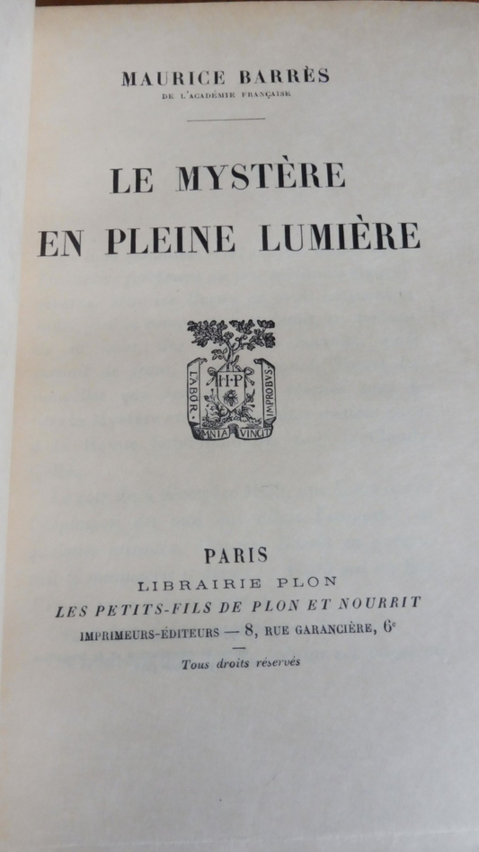 Le Mystère en pleine lumière (Maurice Barrès) 1926 EO JAPON