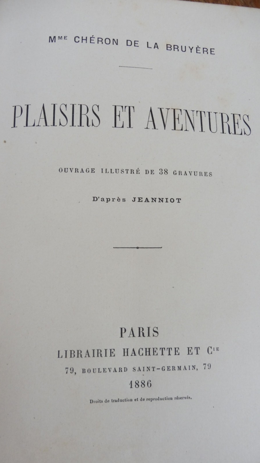 Plaisirs et aventures (Chéron De La Bruyère) 1886 illus. Jeanniot CARTONNAGE