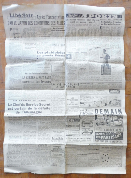 Libé soir 15 août 1945 FIN DE LA GUERRE JAPON