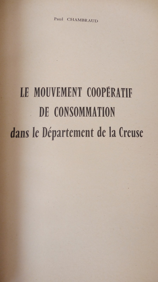 Le Mouvement coopératif de consommation dans la Creuse (Chambraud) 1957