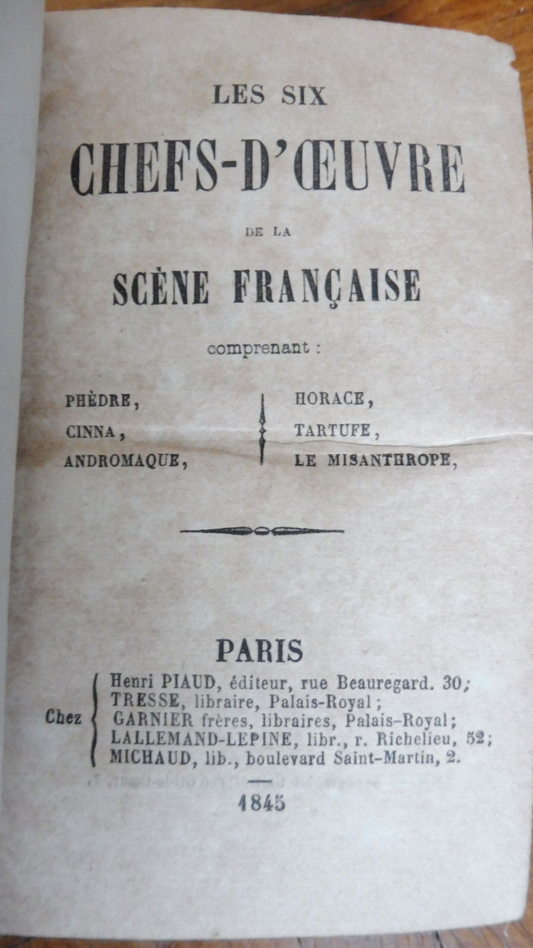 Les Six chefs d'oeuvre de la scène française (Racine...) 1845
