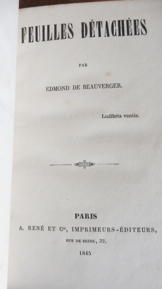 Feuilles détachées (Edmond de Beauverger) 1845 ENVOI EO