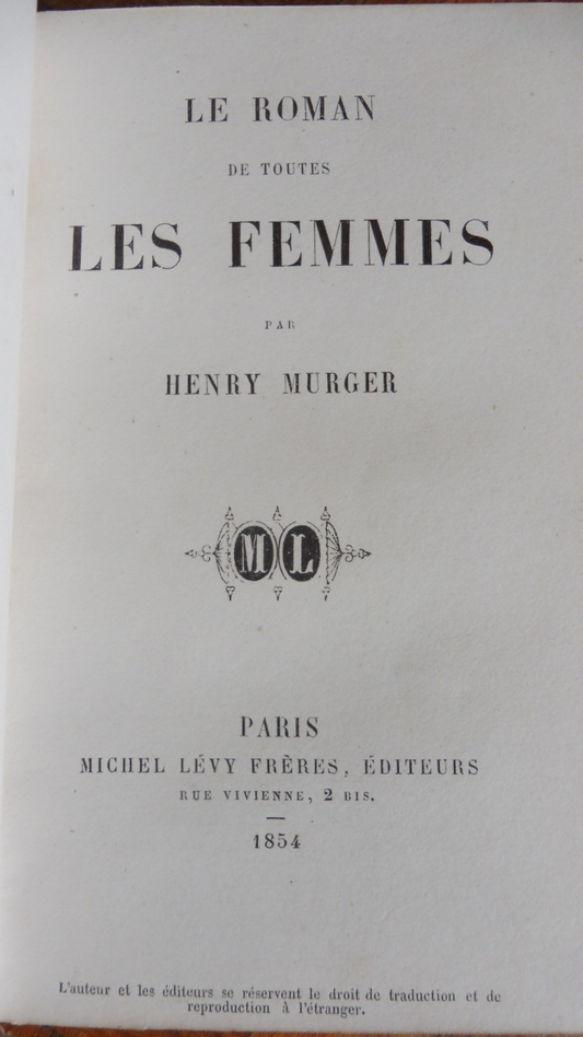 Le Roman de toutes les femmes (Henry Murger) 1854 EO