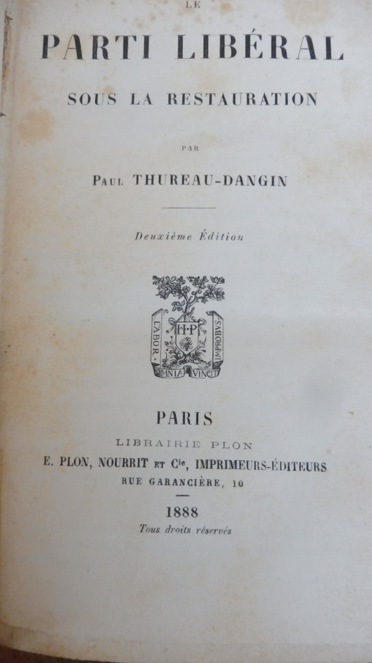 Le Parti libéral sous la Restauration (Paul Thureau-Dangin) 1888