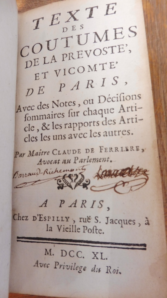Texte des coutumes de la prévosté et vicomté de Paris (De Ferrière) 1740