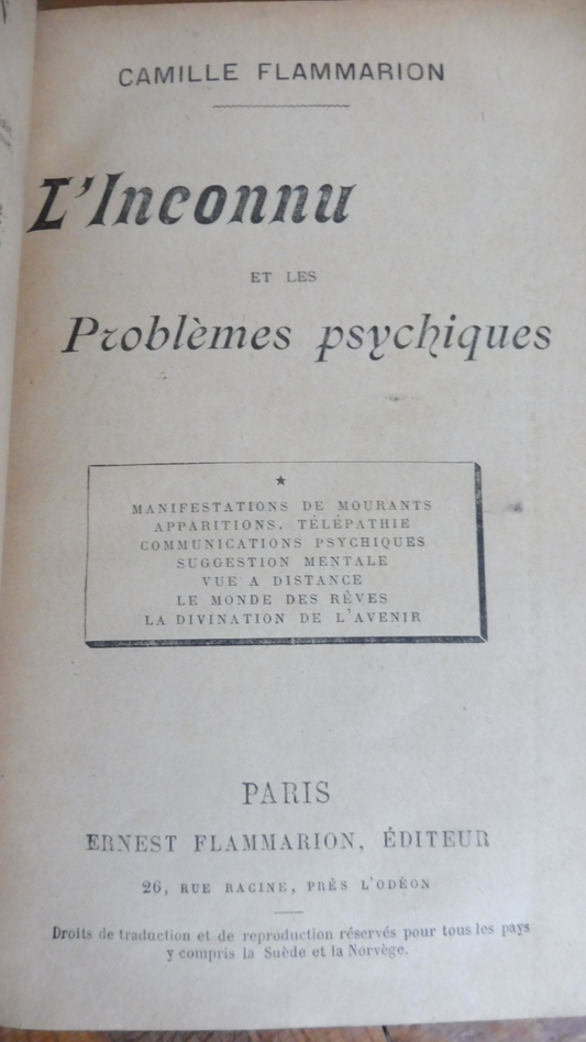 L'Inconnu (Camille Flammarion) 1900 EO ESOTERISME