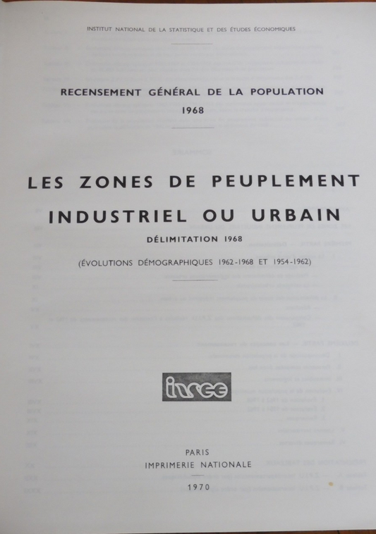 Les Zones de peuplement industriel ou urbain. Délimitation 1968 (INSEE) 1970