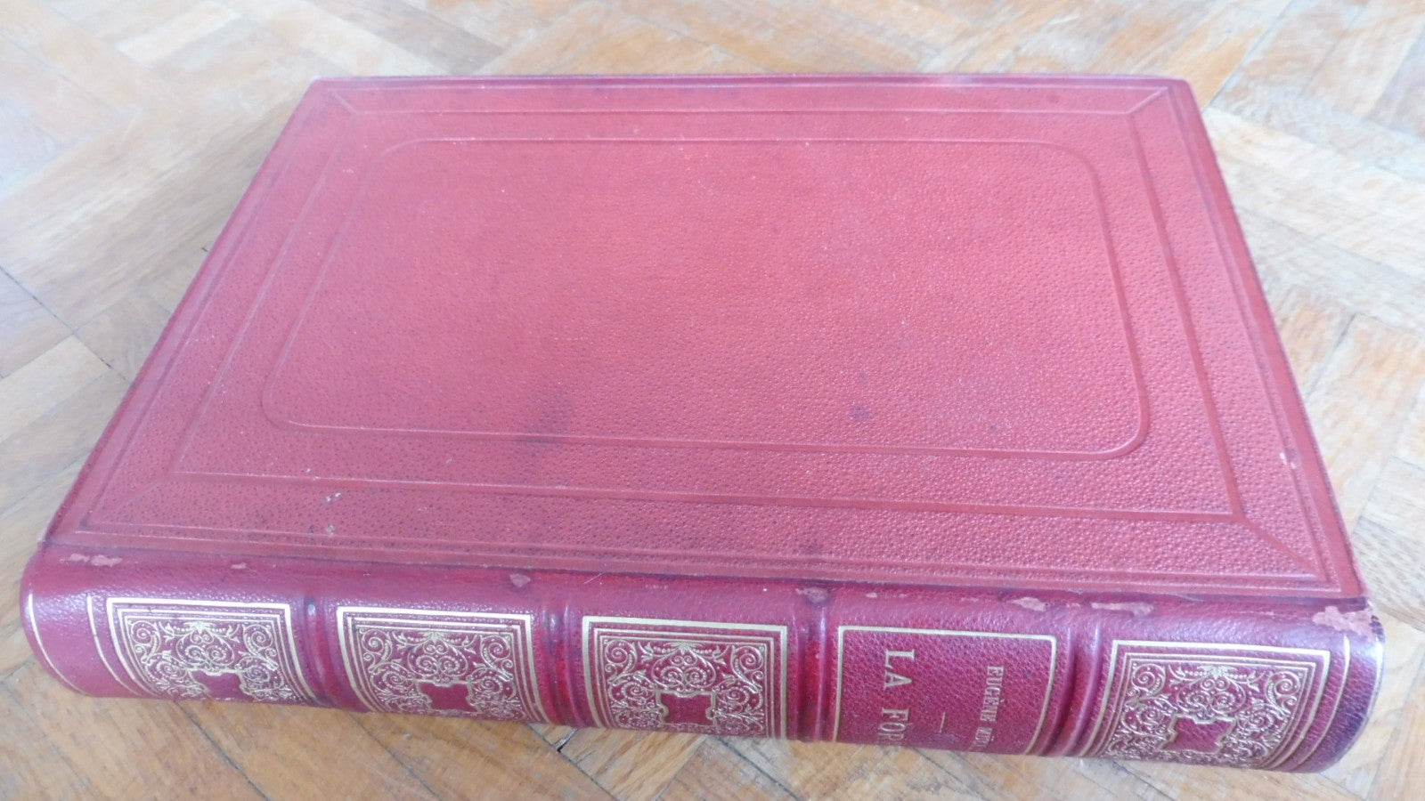 Demi chagrin à 4 nerfs. Dos, coiffe et mors corrects, menues épidermures. Plats percaline, corrects, souillures d'usage. Toutes tranches dorées. Quelques rousseurs. Nombreuses illustrations in et hors texte, gravées par Méaulle + 1 carte double page en couleurs.