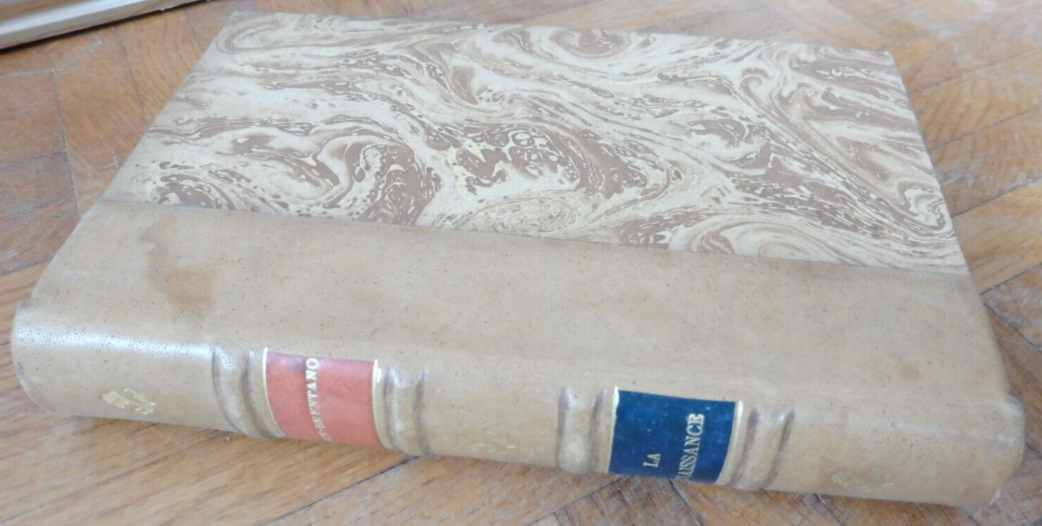 Demi cuir à 4 nerfs et pièces de titre. Dos, coiffe, mors et plats en bel état. Tranches correctes. Intérieur frais. Couverture conservée.