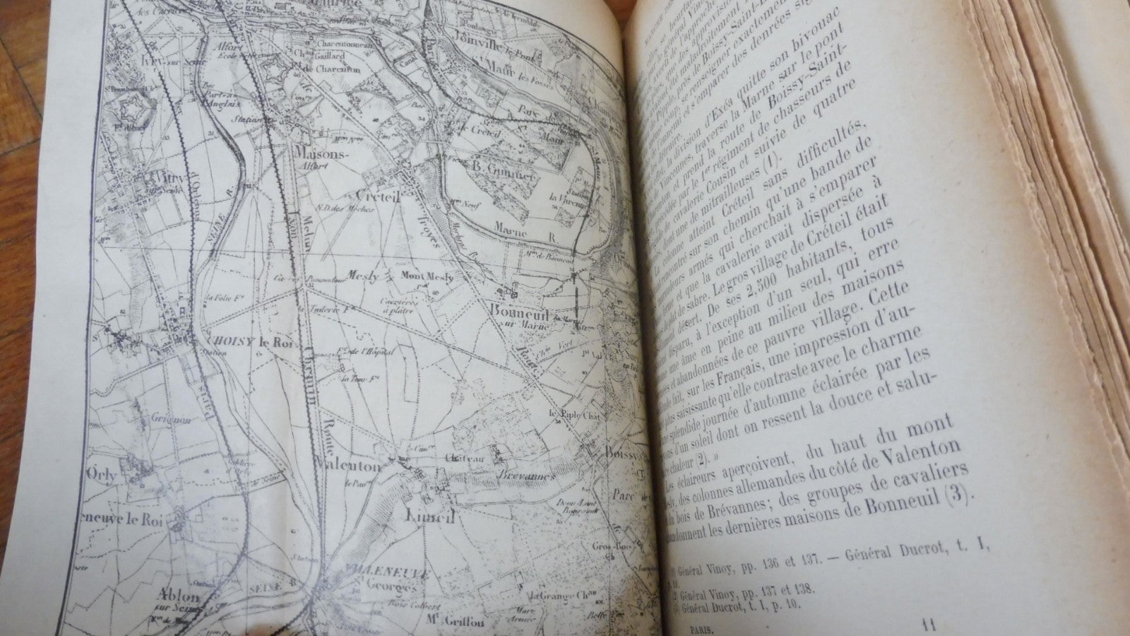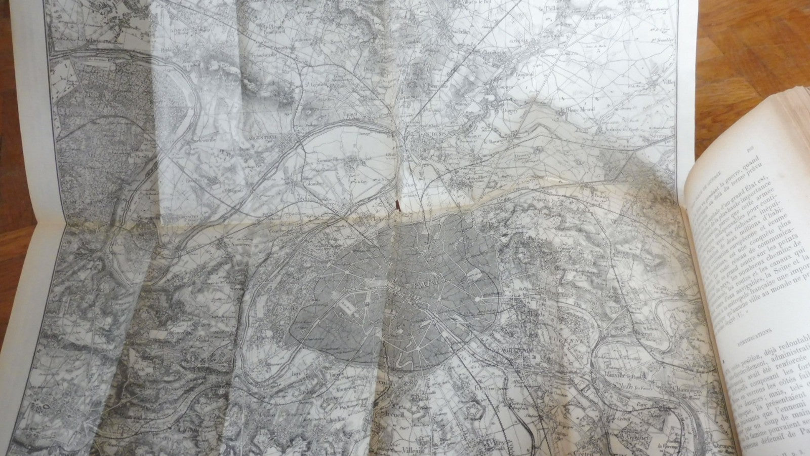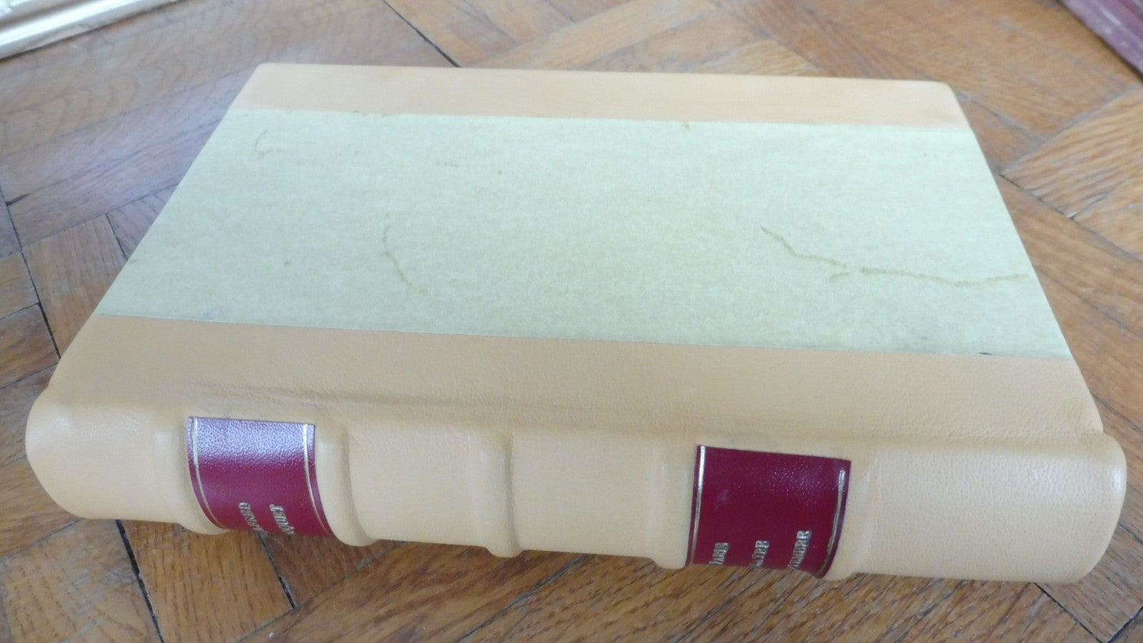 Demi cuir à 5 nerfs, pièces de titre et bandes. Reliure postérieure, bel état général. Tranches passées. Intérieur idem. Couverture conservée. 4 cartes dépliantes.