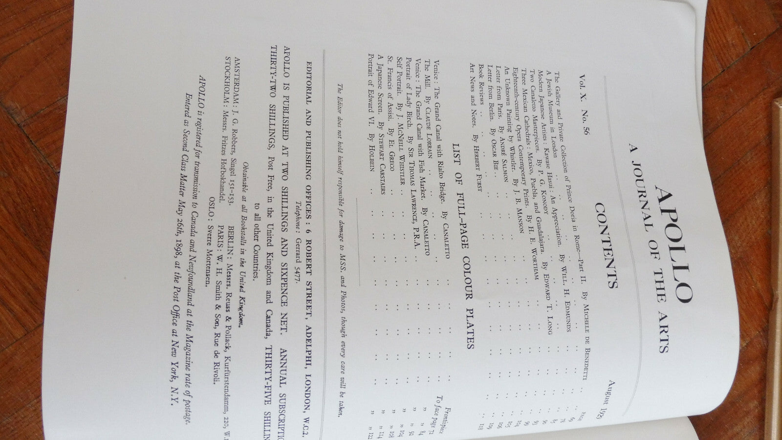 "Apollo. A journal of the arts. Vol. X. N°56 august 1929"