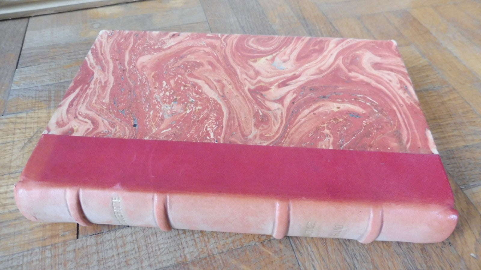 Demi cuir à 4 nerfs. Dos correct, insolé. Coiffe et mors sains. Plats propres. Tranches et intérieur un peu passés. Couverture conservée.
