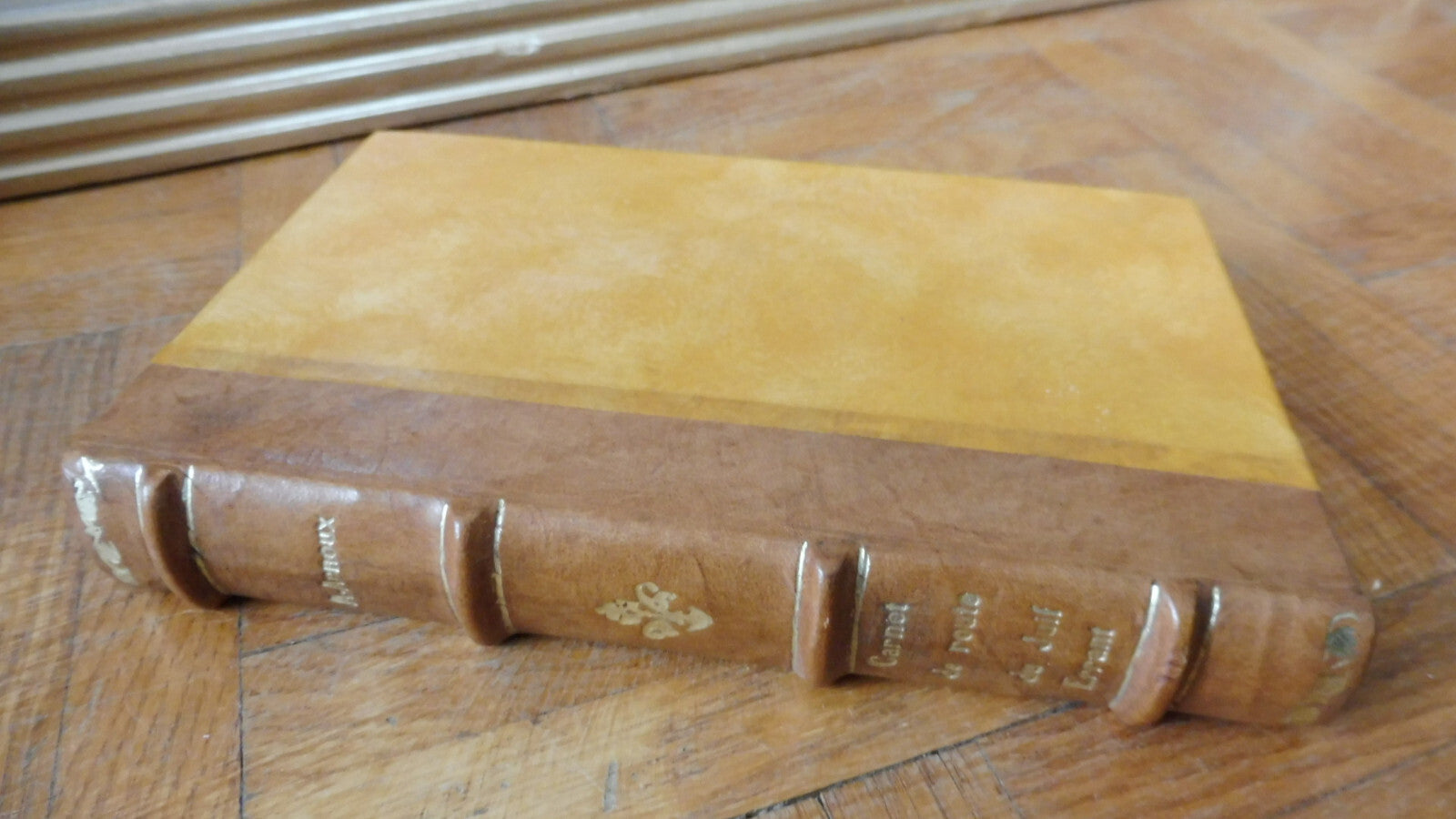 Demi cuir à 4 nerfs. Dos, coiffe, mors et plats en bel état. Tranches et intérieur frais.