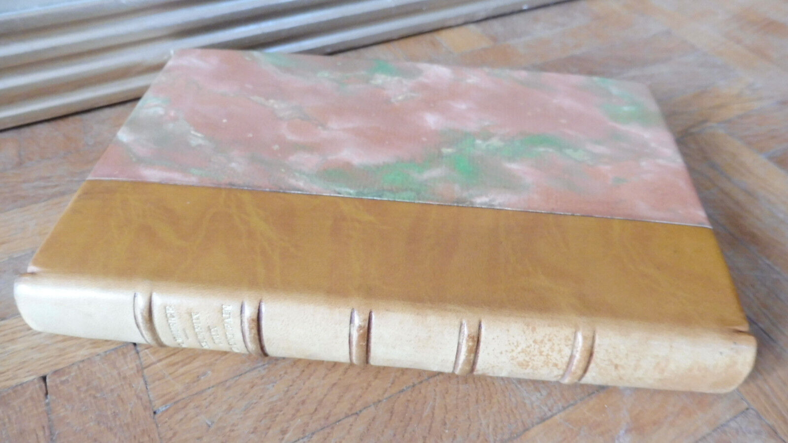 Demi cuir à 5 nerfs. Dos insolé, bel état. Coiffe, mors et plats en bel état. Tranches correctes. Intérieur frais. Couverture conservée.