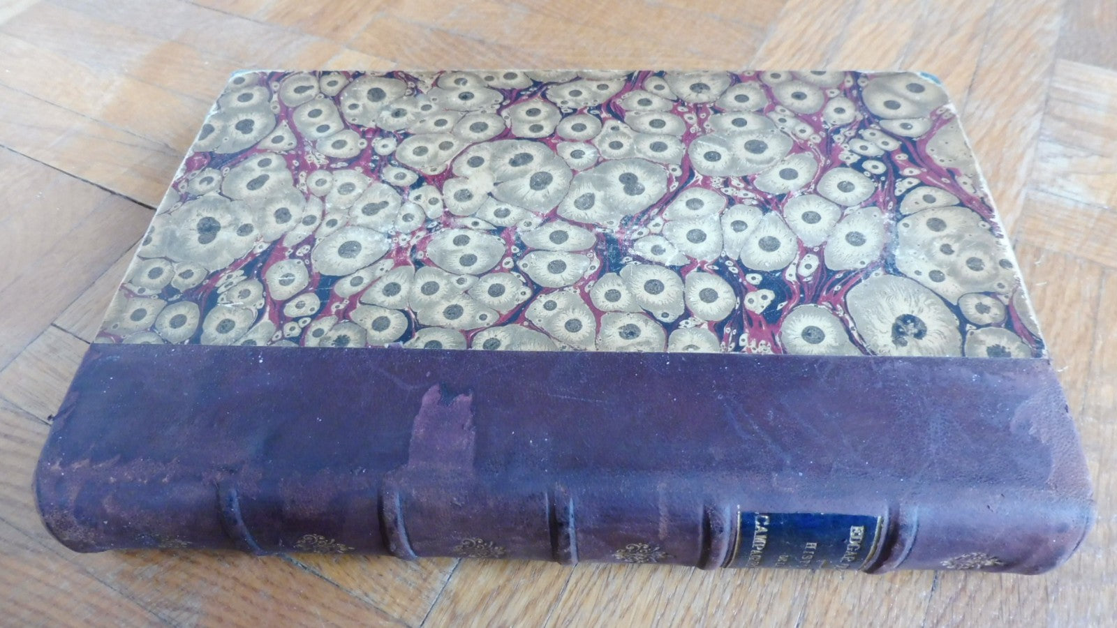 Demi cuir à 5 nerfs et pièce de titre. dos, coiffe et mors corrects, épidermures. Plats en état d'usage, frottés aux bords. Tranches passées. Intérieur correct, rares rousseurs. Carte dépliante en fin de vol.