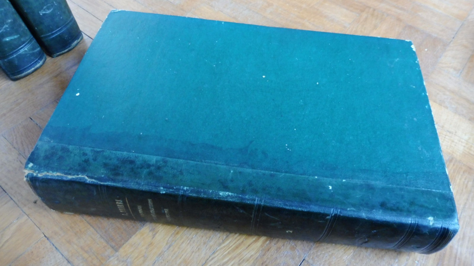 Plein cuir à dos lisse. Dos, coiffes et mors en état d'usage. Mors du t.2 fendus sur 4 cm. Tranches passées. Rousseurs. Manque titre du t.1