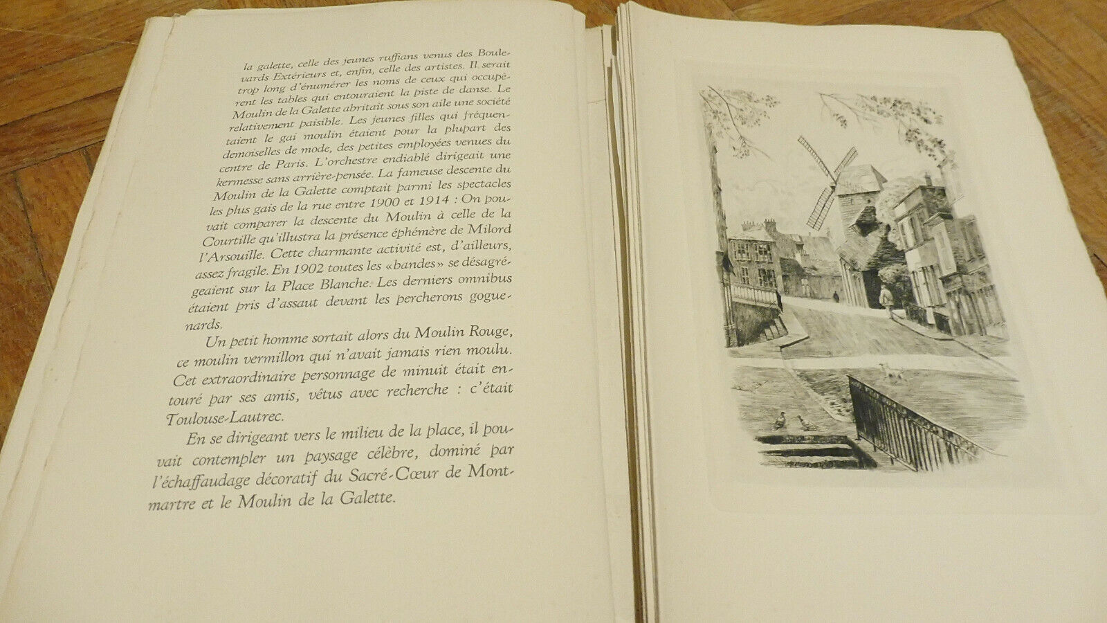 Petit ouvrage présentant certains des lieux incontournables du Paris de son époque (le Moulin de la Galette, Saint-Germain l'Auxerrois, Le Luxembourg, la place de la Concorde, la place des Vosges, Saint-Germain des Prés...)