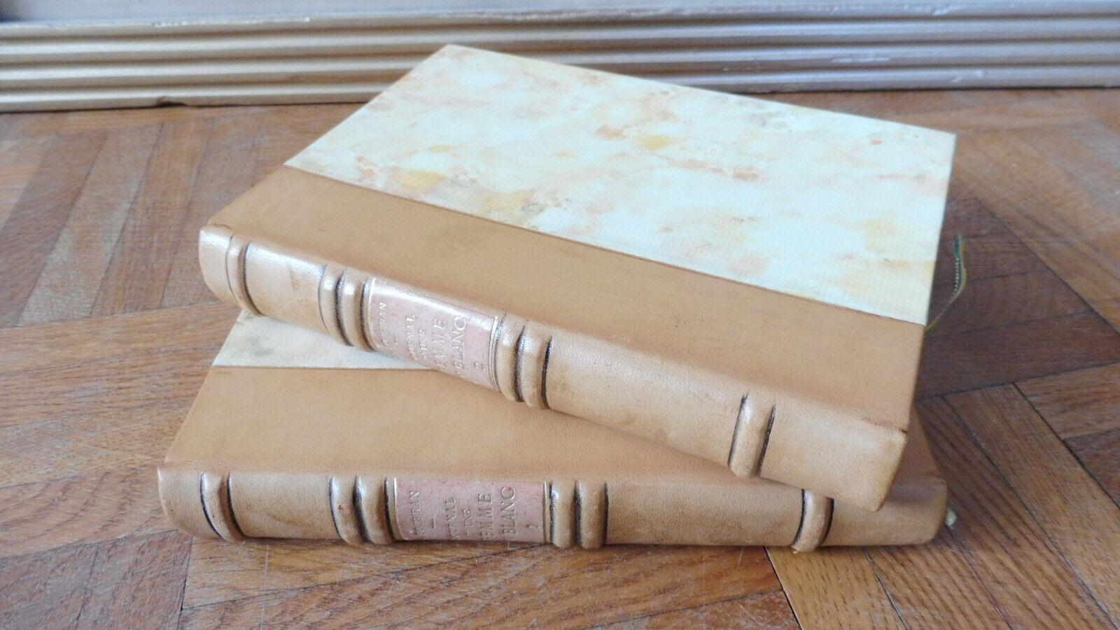 Demis cuir à 4 nerfs et pièces de titre. Dos, coiffes, mors et plats en bel état. Tranches et intérieur frais.