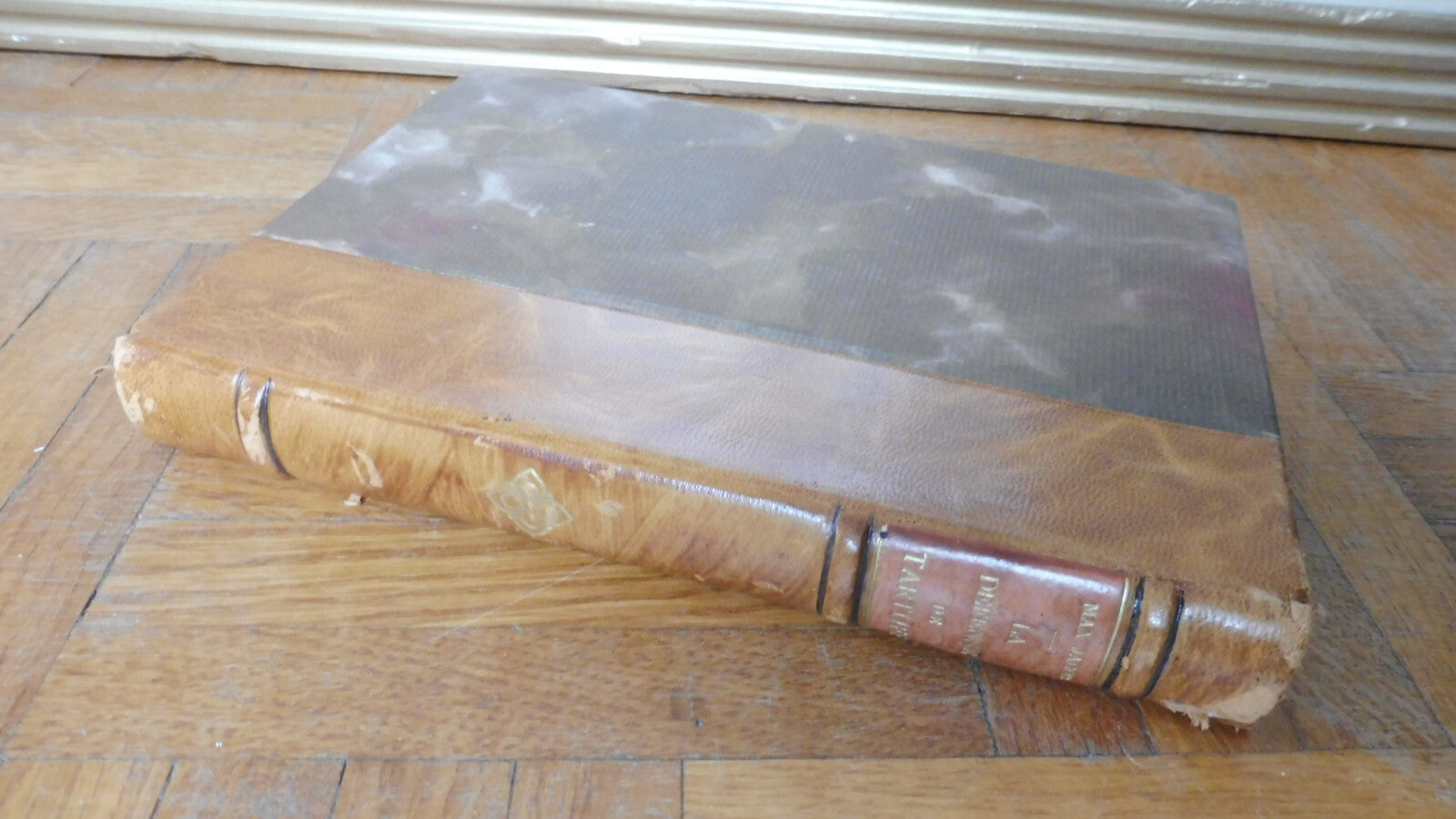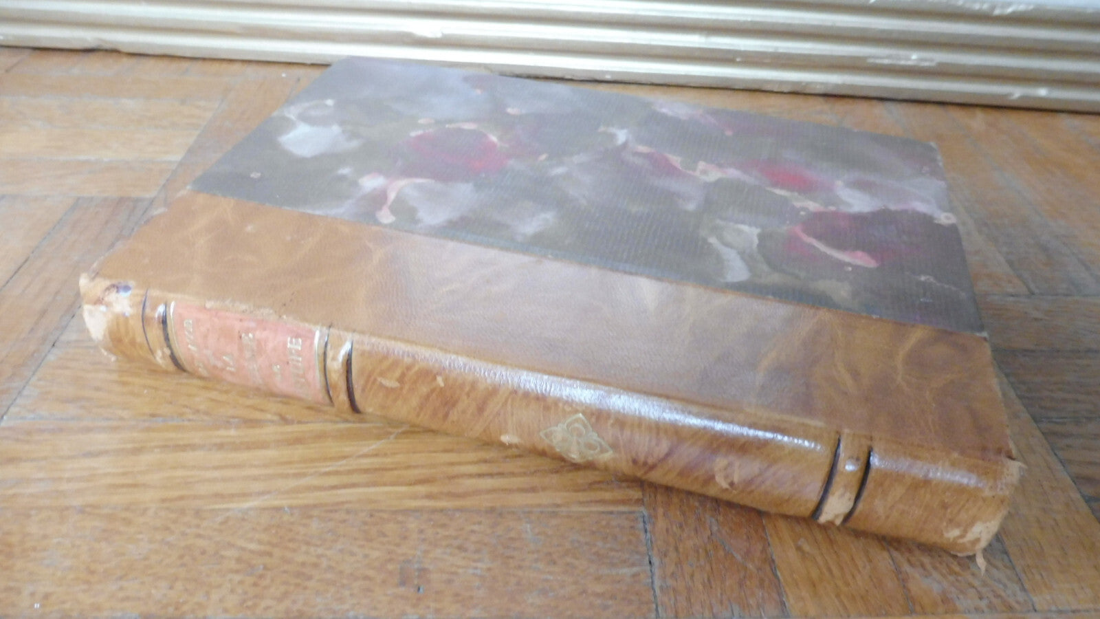 Demi cuir à 3 nerfs et pièce de titre. Dos correct. Coiffe frottée. Mors sains, menus frottements. Plats propres. Tranches et intérieur frais.