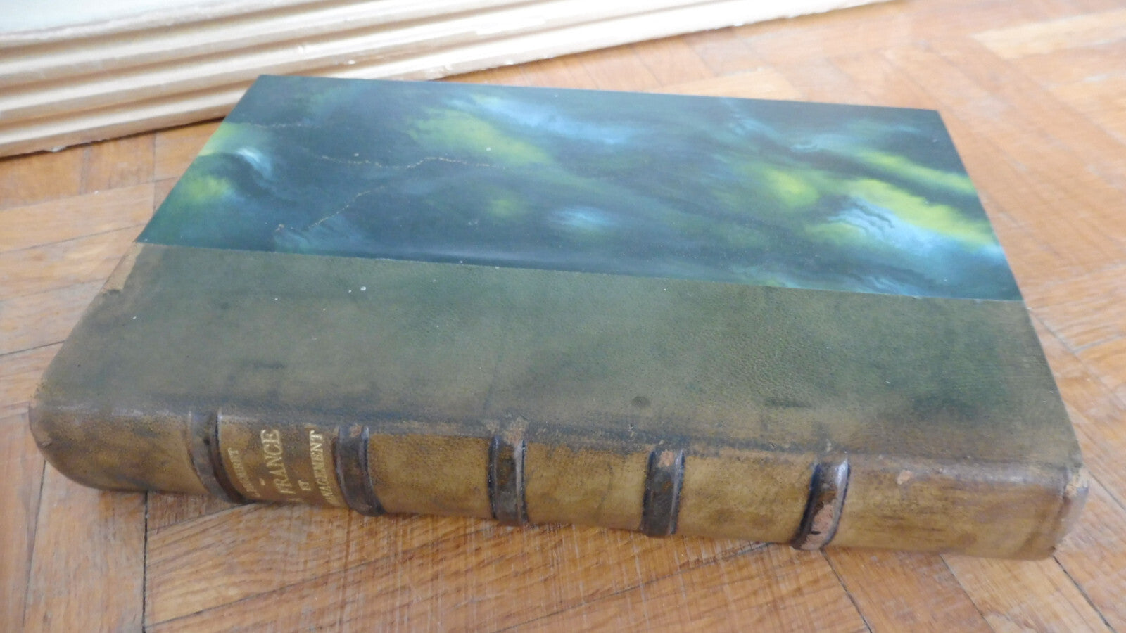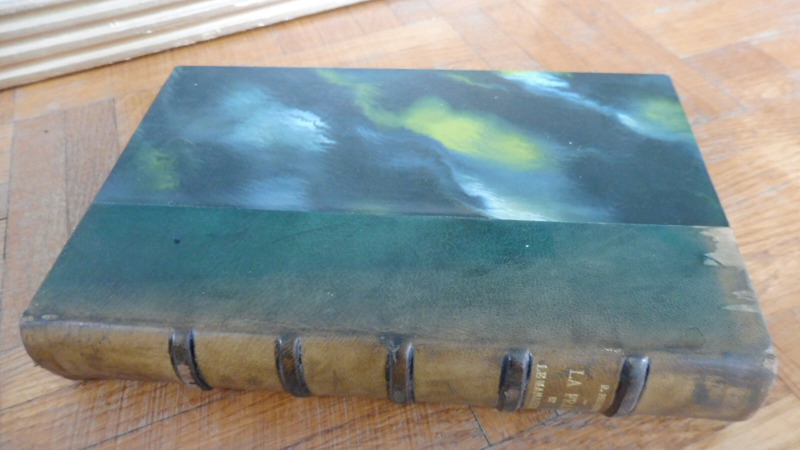 Demi veau à 5 nerfs. Dos insolé, correct, épidermures. Coiffe et mors idem. Plats propres. Tranches et intérieur assez frais.