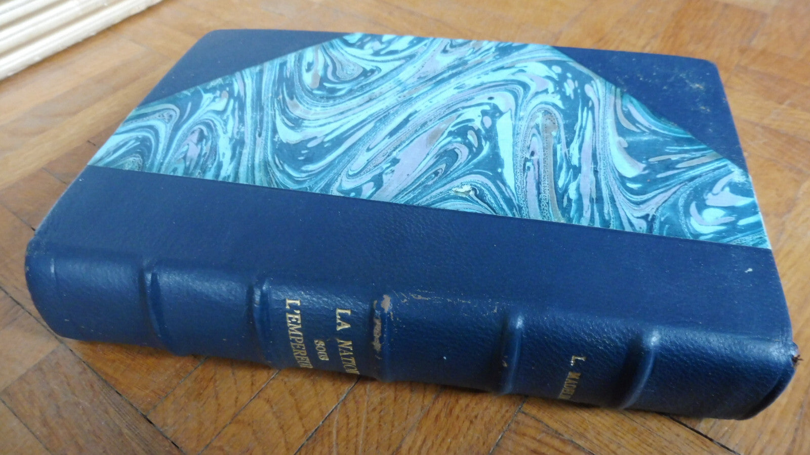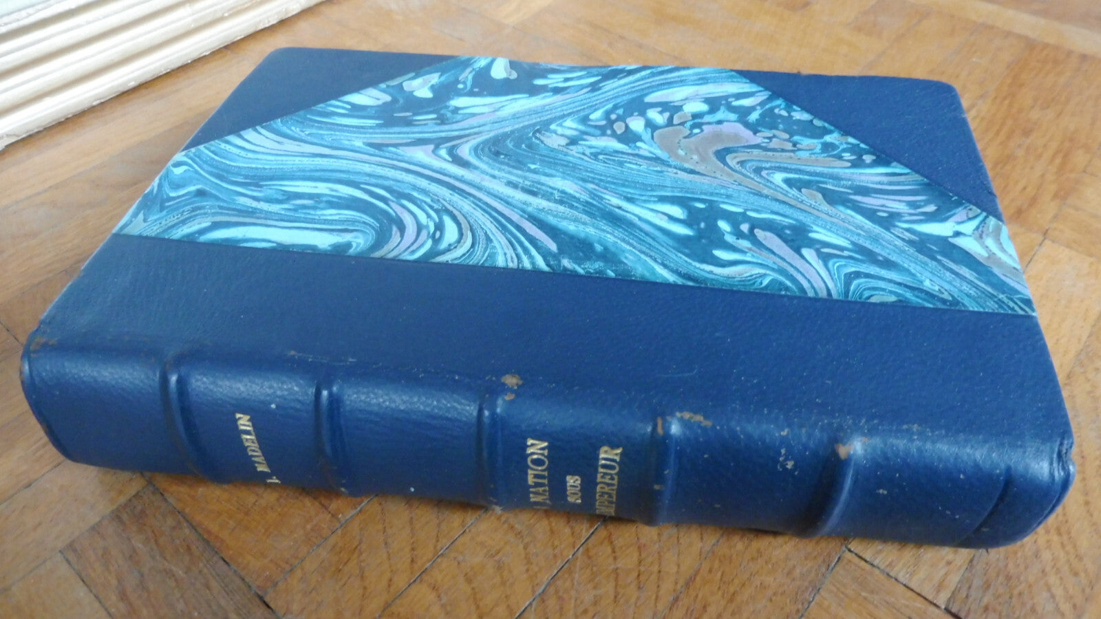 Demi cuir à 5 nerfs et coins. Dos, coiffe et mors corrects, épidermures superficielles. Plats propres. Tranches et intérieur passés.