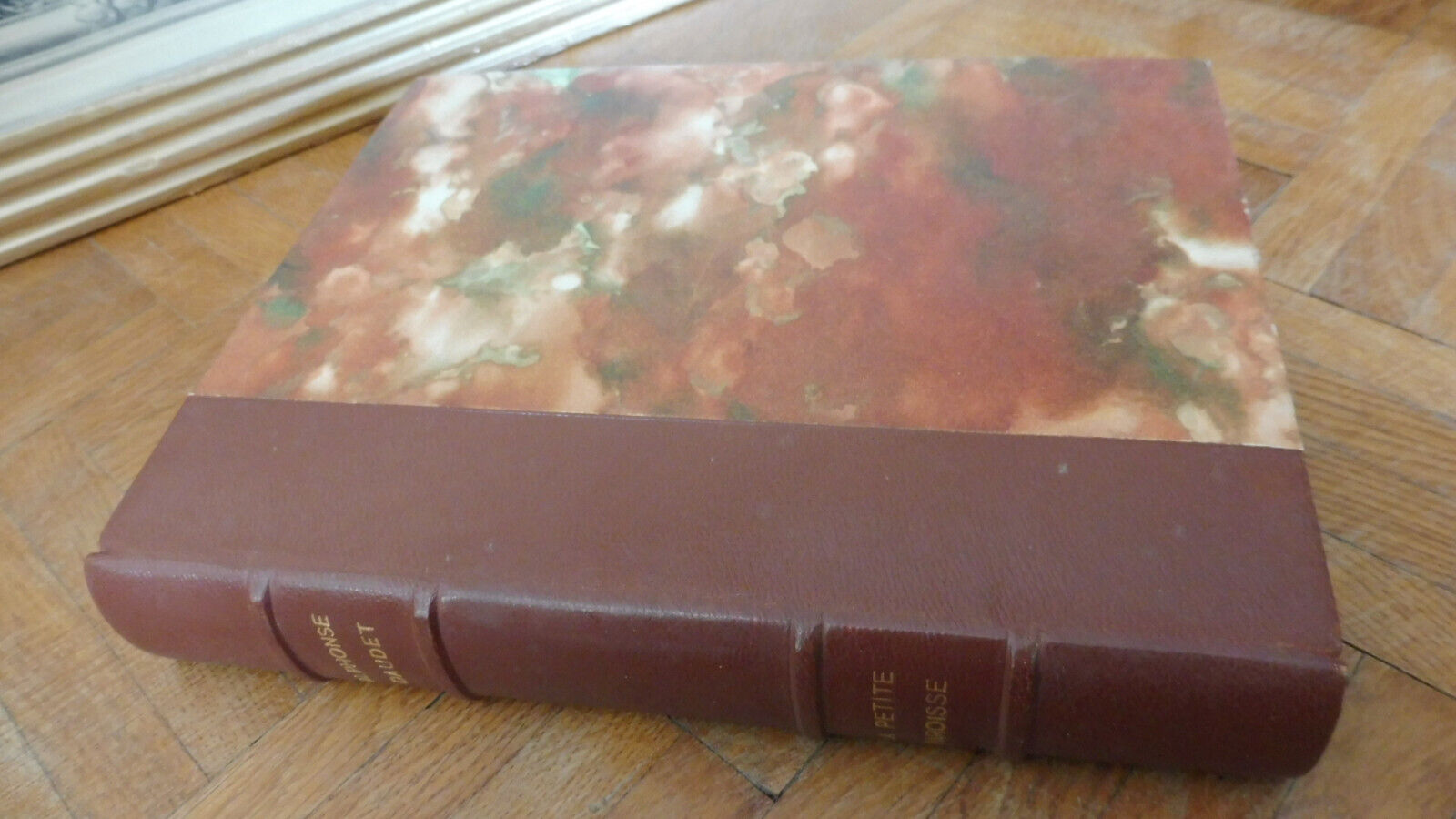 Demi cuir à 4 nerfs. Dos, coiffe, mors et plats en bel état. Tranches roussies. Tranche supérieur dorée. Intérieur présentant des rousseurs marginales éparses. Couverture conservée.
