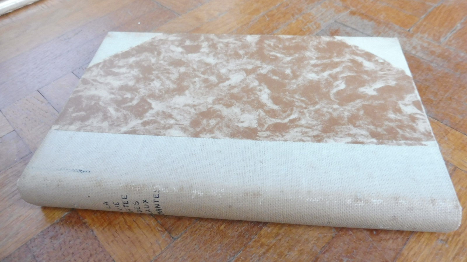 Demie toile à coins, état d'usage, souillures. Titre calligraphié. Tranches et intérieur passés.