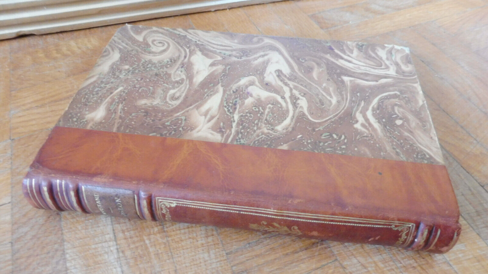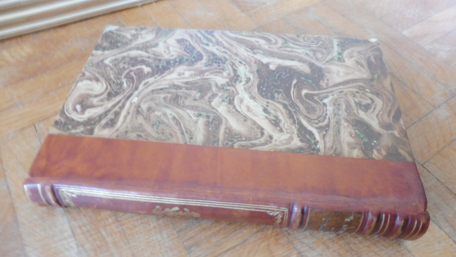 Demi cuir à 4 nerfs et pièce de titre. Dos correct, frottements. Coiffe et mors idem. Plats frottés aux bords. Coins tassés. Tranches et intérieur passés.
