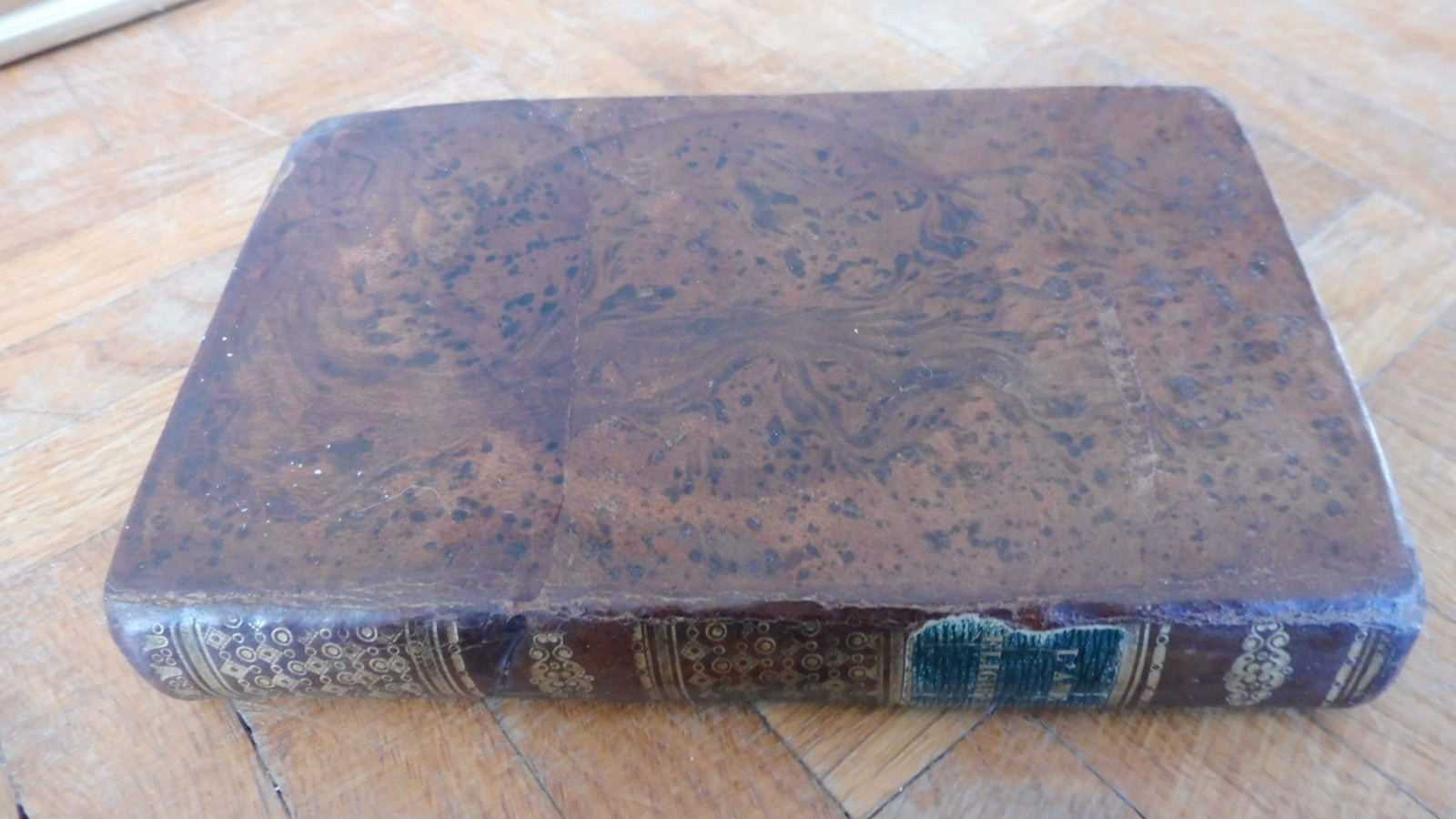 Plein cuir à dos lisse et pièce de titre. Dos orné, état d'usage. Mors fatigués. Tranches passées. Intérieur correct.