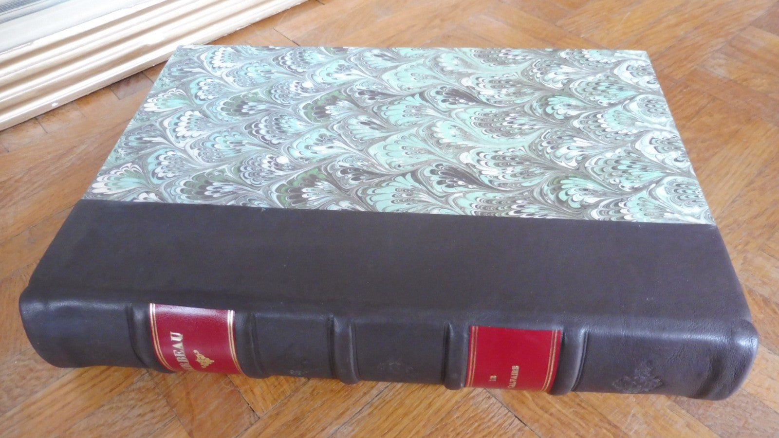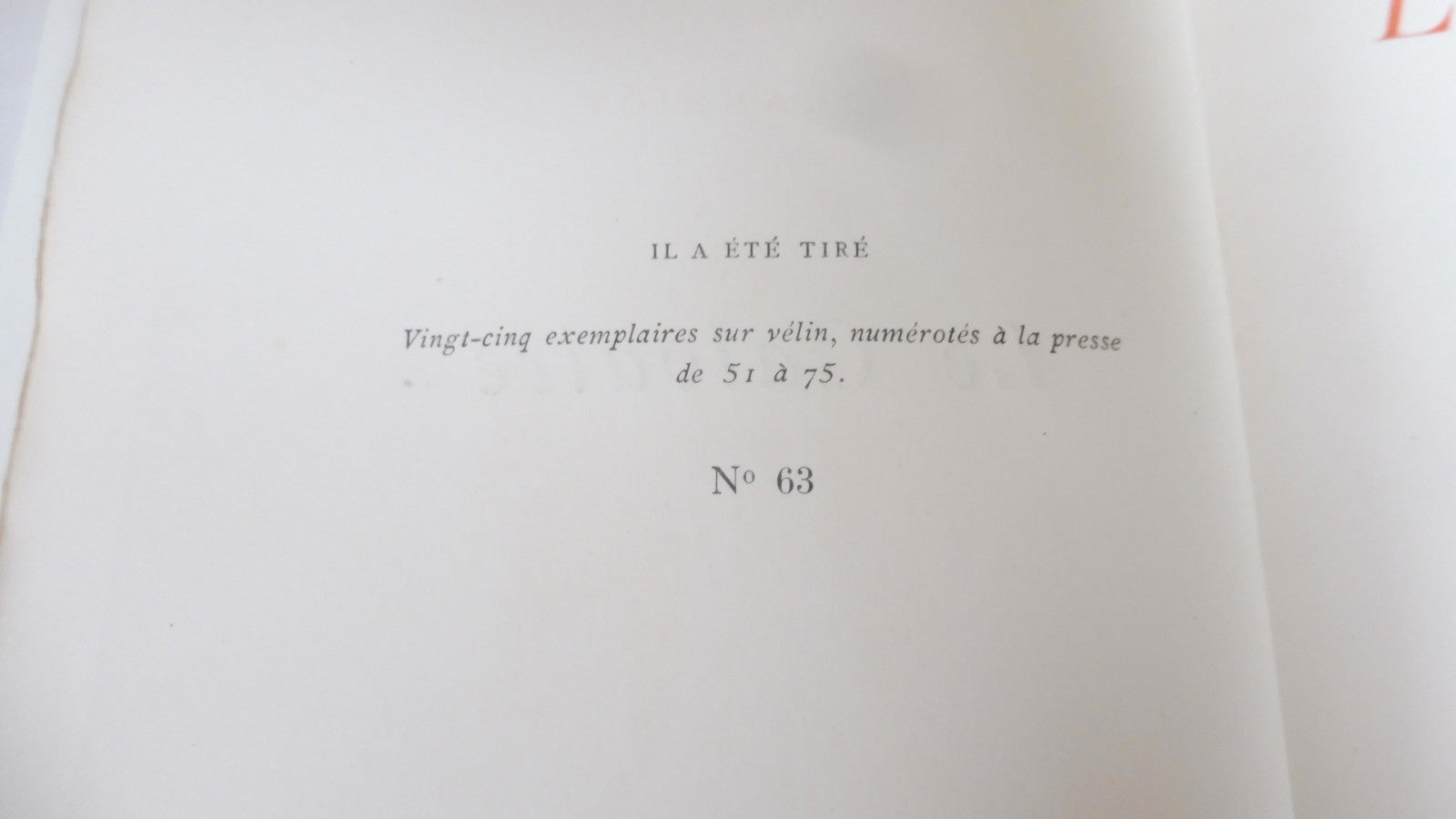 Demie basane postérieure à 5 nerfs et pièces de titre. Reliure en bel état général. Tranches un peu passées. Intérieur frais. Couverture conservée. Exemplaire numéroté, 1 des 25 imprimés sur vélin.
