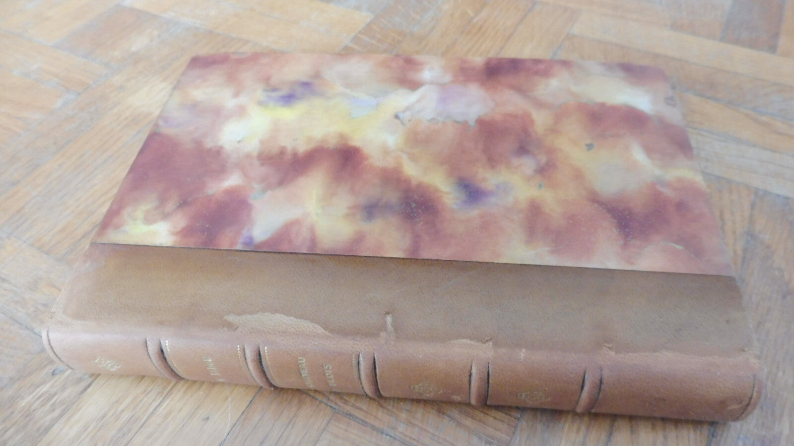 Demi cuir à 5 nerfs. Dos, coiffe et mors corrects, épidermures. Plats un peu frottés aux bords. Tranches et intérieur passés. Couverture conservée.