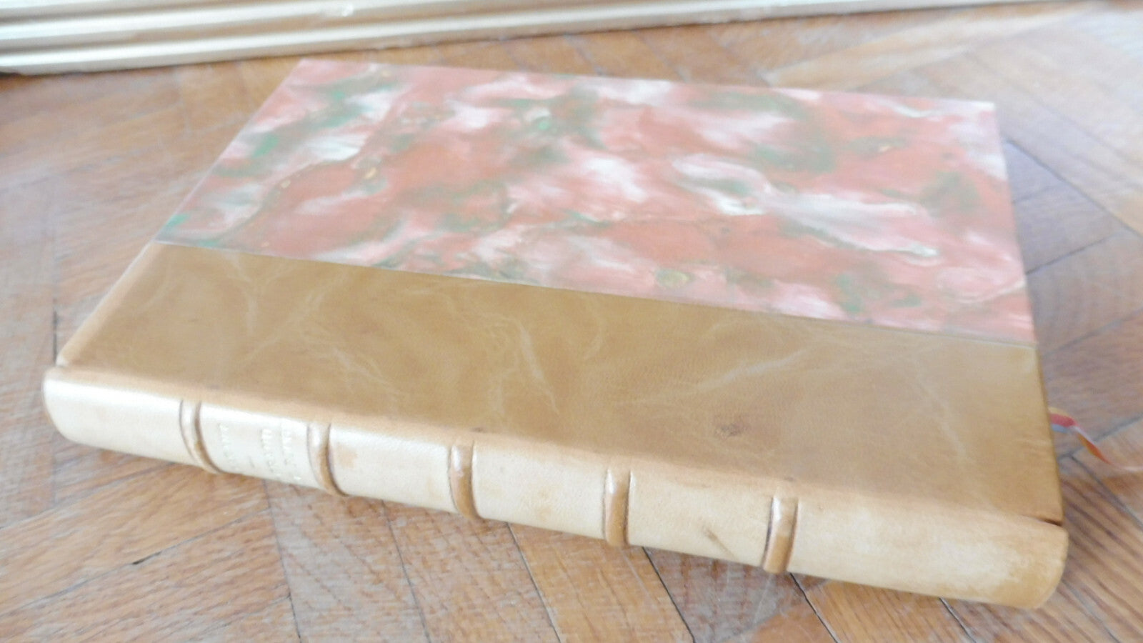 Demi cuir à 5 nerfs. Dos, coiffe et mors en bel état. Dos un peu insolé.