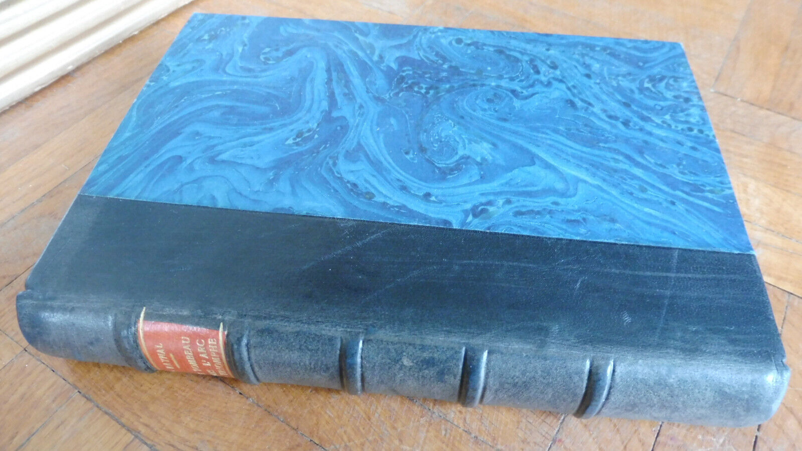Demi cuir à 5 nerfs et pièce de titre. dos correct. Coiffe et mors sains. Plats idem. Tranches et intérieur passés.