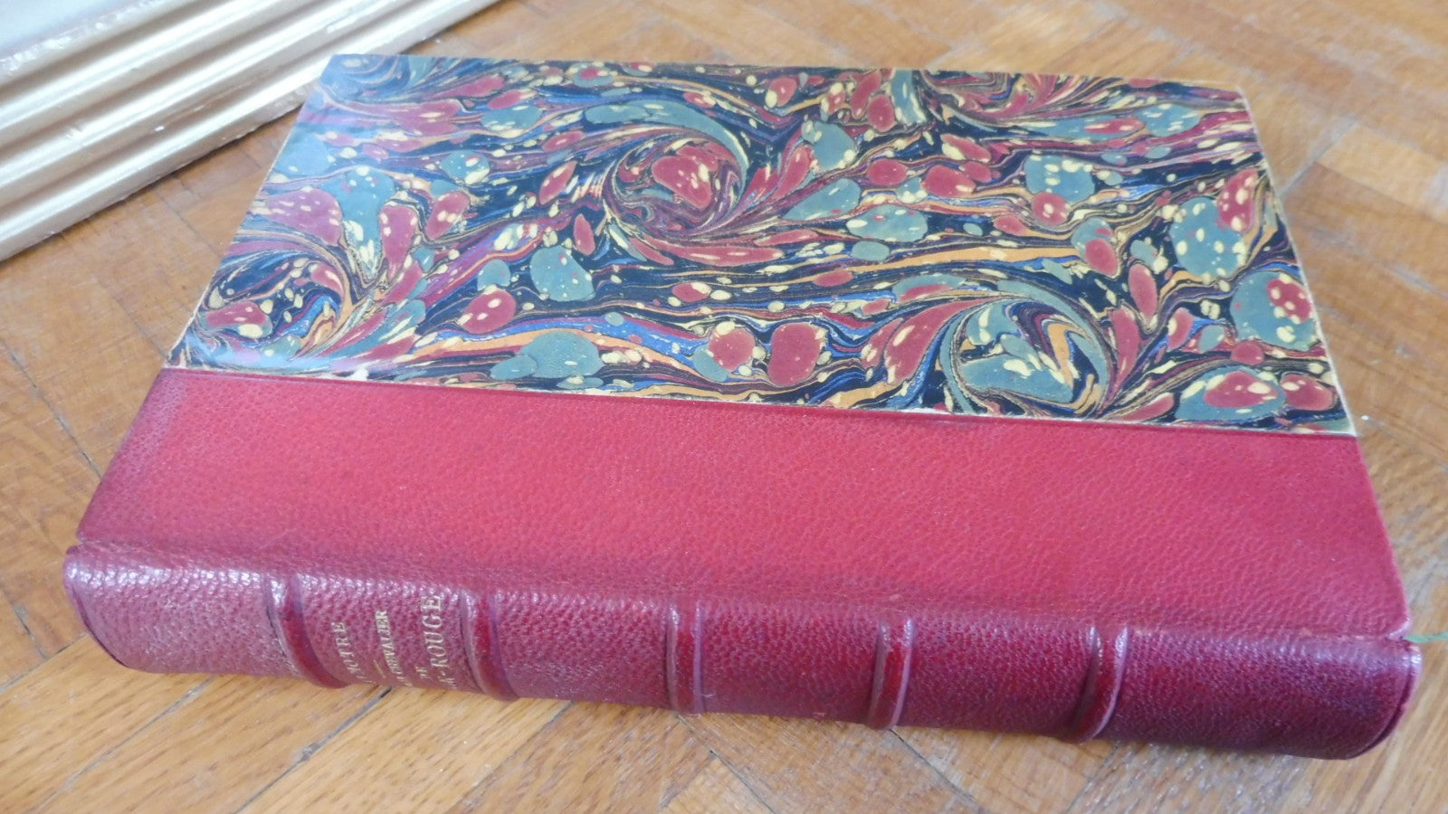 Demi cuir à 5 nerfs. Dos, coiffe et mors corrects. Plats idem. Tête dorée. Intérieur correct, bords passés. Frontispice. Couverture conservée. Imprimé sur papier vergé.