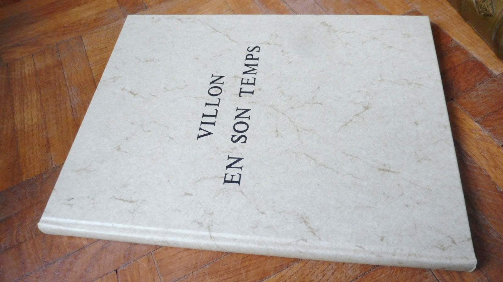 -1 coffret contenant "Villon et son temps", Louis-Robert Plazolles. Paris, Club du Livre, 1974, cartonnage de 80 pages, bel état. 1 plan de Paris, couleurs, bel état, sous chemise.1 fac simile danse macabre, couleurs, sous chemise. Pièces d'archives fac simile, bel état, sous chemise. Dessins et bois gravé, sous chemise. 3 jeux de cartes gravées. Le tout présenté dans un coffret imitant un livre, même format et style que précédent.