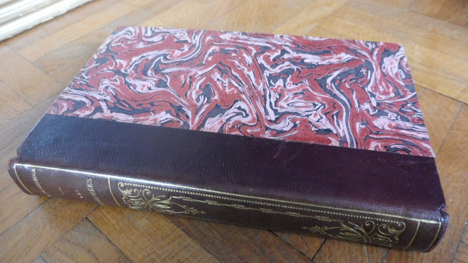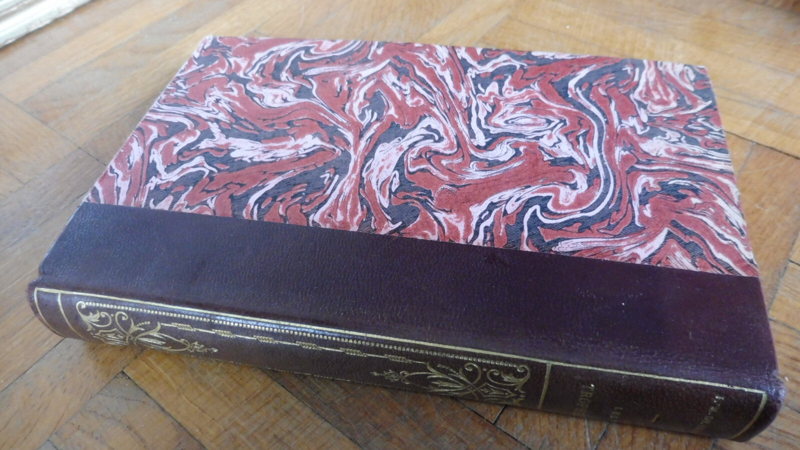 Demi cuir à dos lisse. Dos orné, bel état. Coiffe et mors sains. Plats corrects. Tranches passées. Intérieur assez frais, propre. Couverture conservée. Tête dorée.