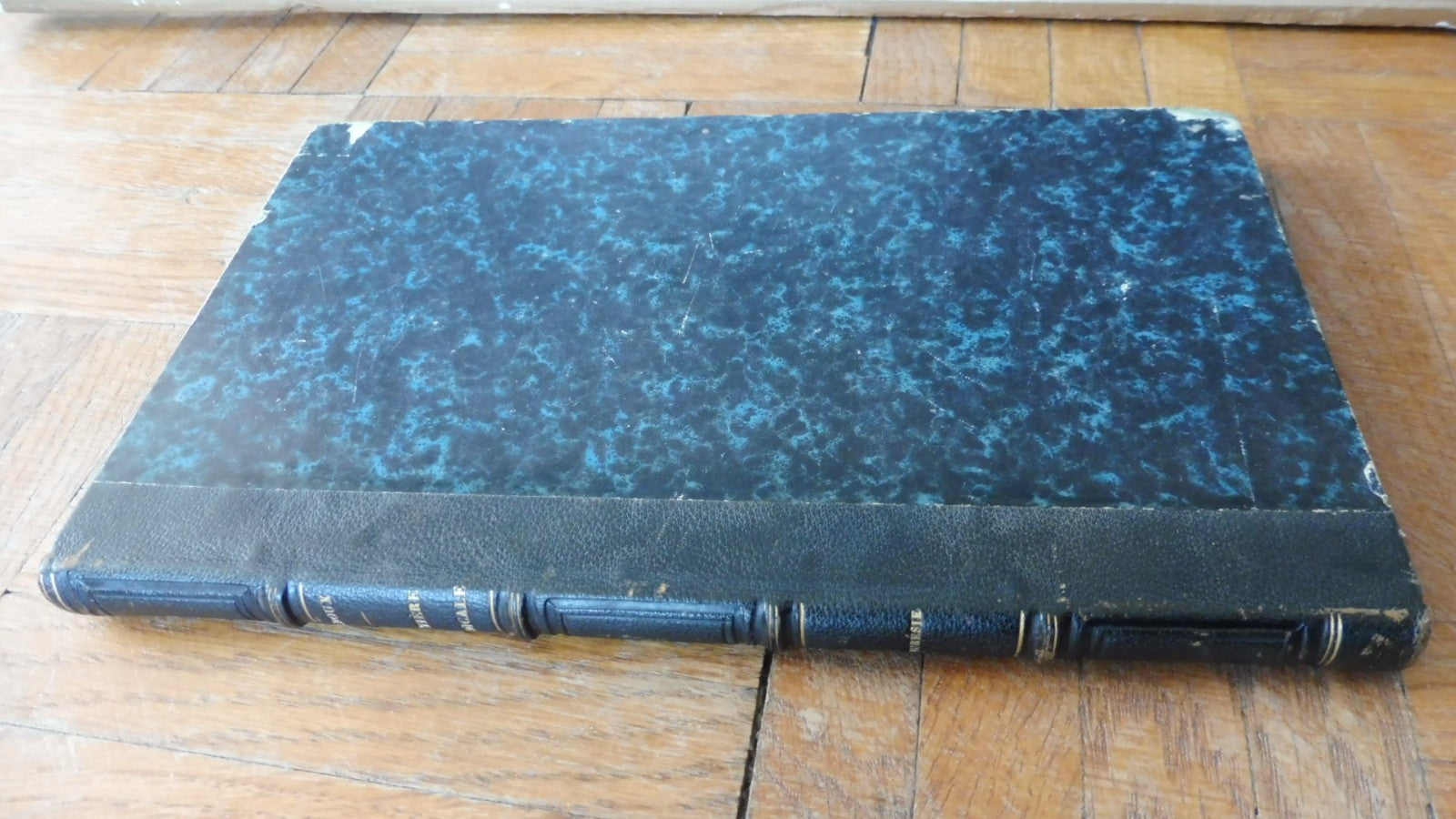 Demi cuir à 4 nerfs. Dos, coiffe et mors corrects, épidermures. Plats en état d'usage, frottés. Tranches passées. Rousseurs.