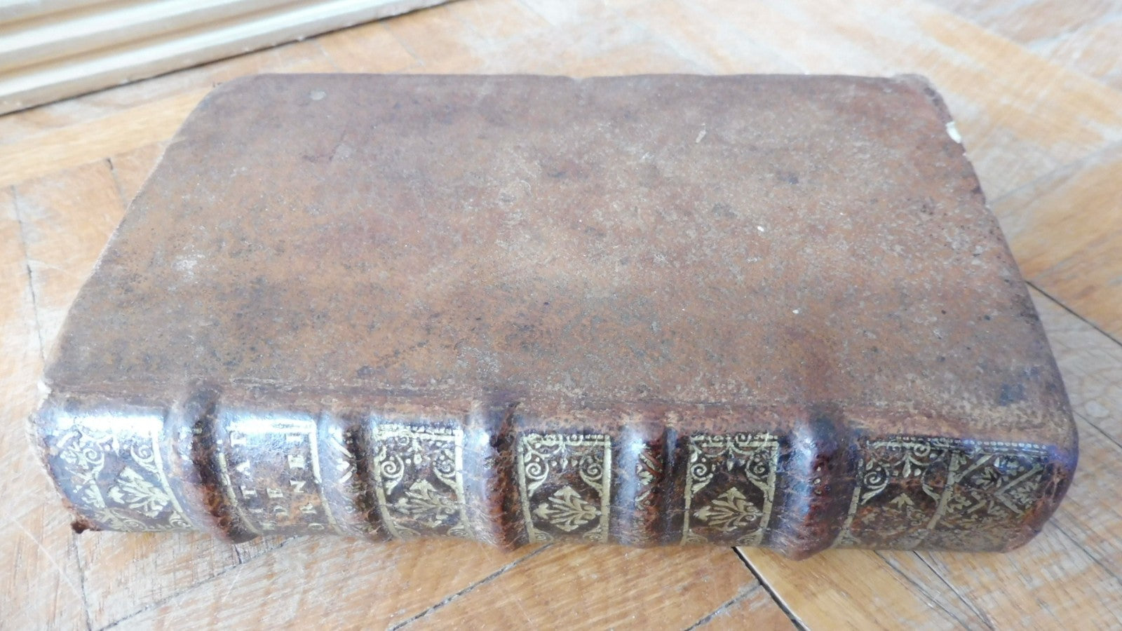 Pleine basane du temps. Dos à 5 nerfs, orné. Coiffe rognée. Mors et plats corrects. Intérieur passé. Figure de titre.