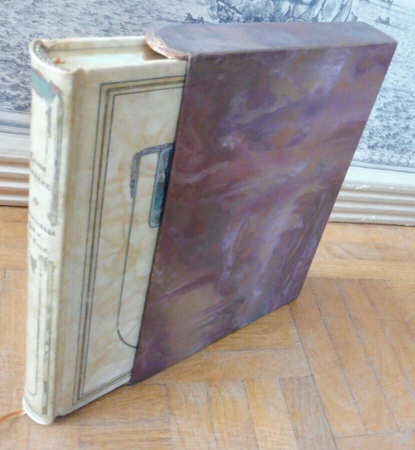 Plein vélin à dos lisse. Dos peint, titrage calligraphié, bel état. Coiffe et mors en bel état. Plats en bel état, peints, filets. Signature du relieur (G. G. Levitzky) au second plat. Tranches et intérieur frais. Tête dorée. Couverture conservée. Exemplaire numéroté, 1 des 1100 imprimés sur vélin de rives. Illustré de 14 composition de L. Schulz. En étui carton, bel état, menus frottement.