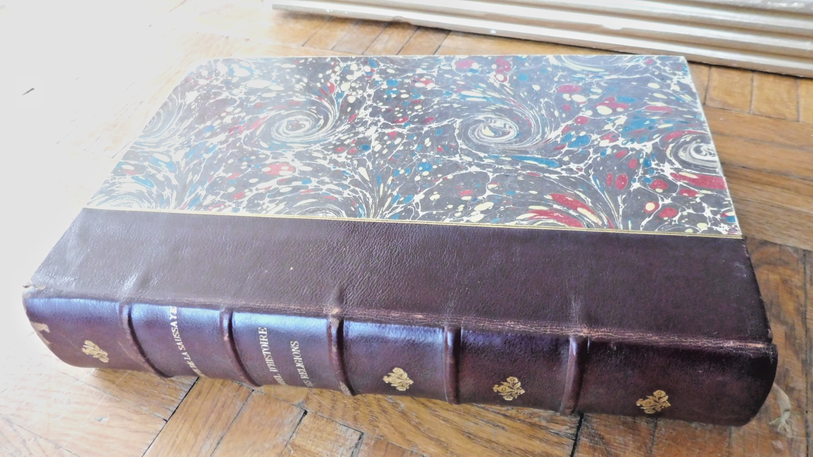 Demi cuir à 5 nerfs. Dos, coiffe et mors corrects, menues épidermures. Plats en état d'usage, frottés, coins un peu tassés. Tranches passées. Intérieur frais.