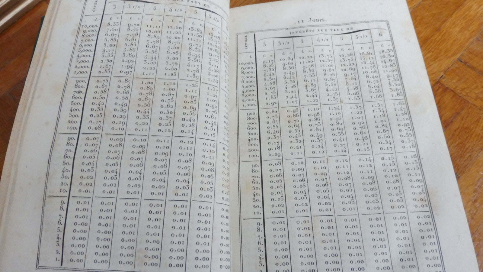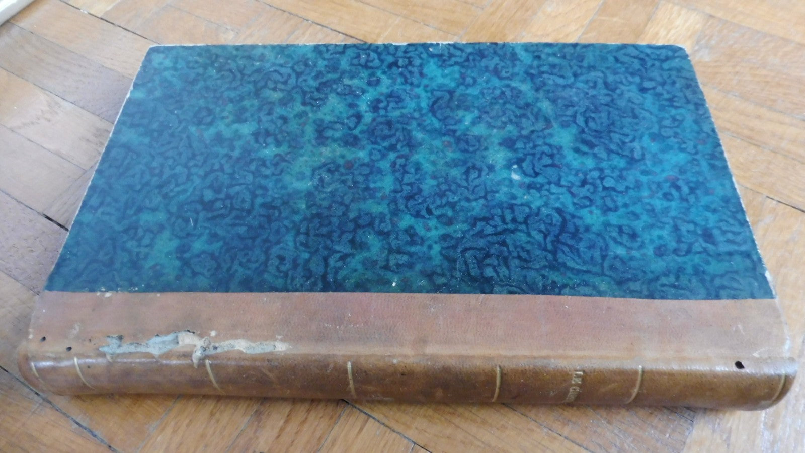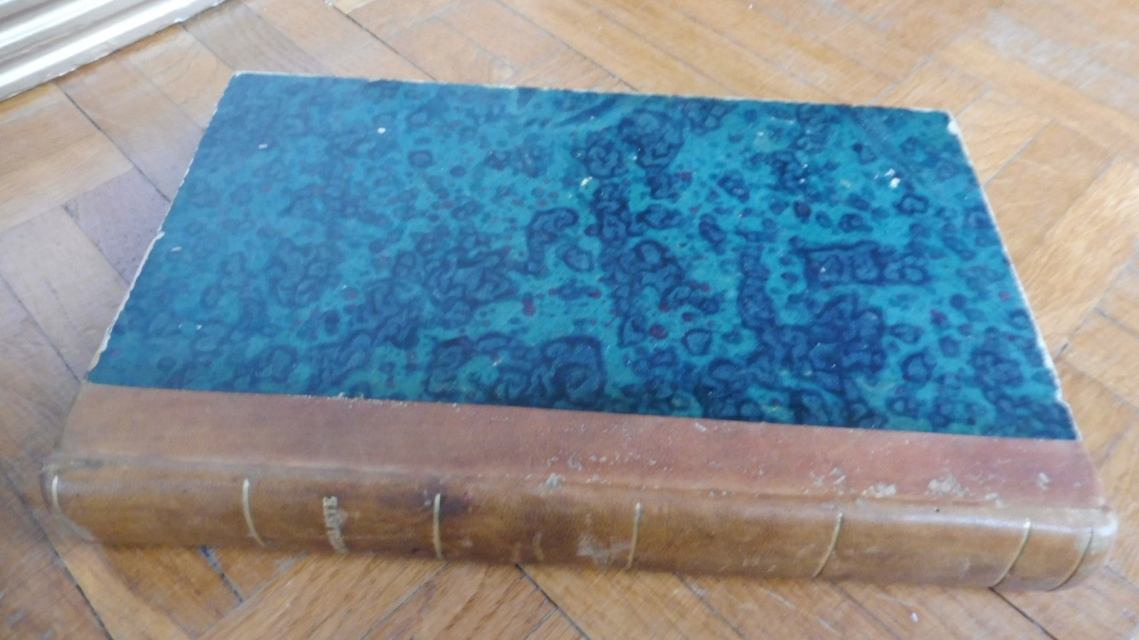Demie basane à dos lisse. Dos et coiffe en bel état. Travail de vers au mors inférieur gauche sur 7 cm. Plats en état d'usage. Tranches passées. Intérieur correct.