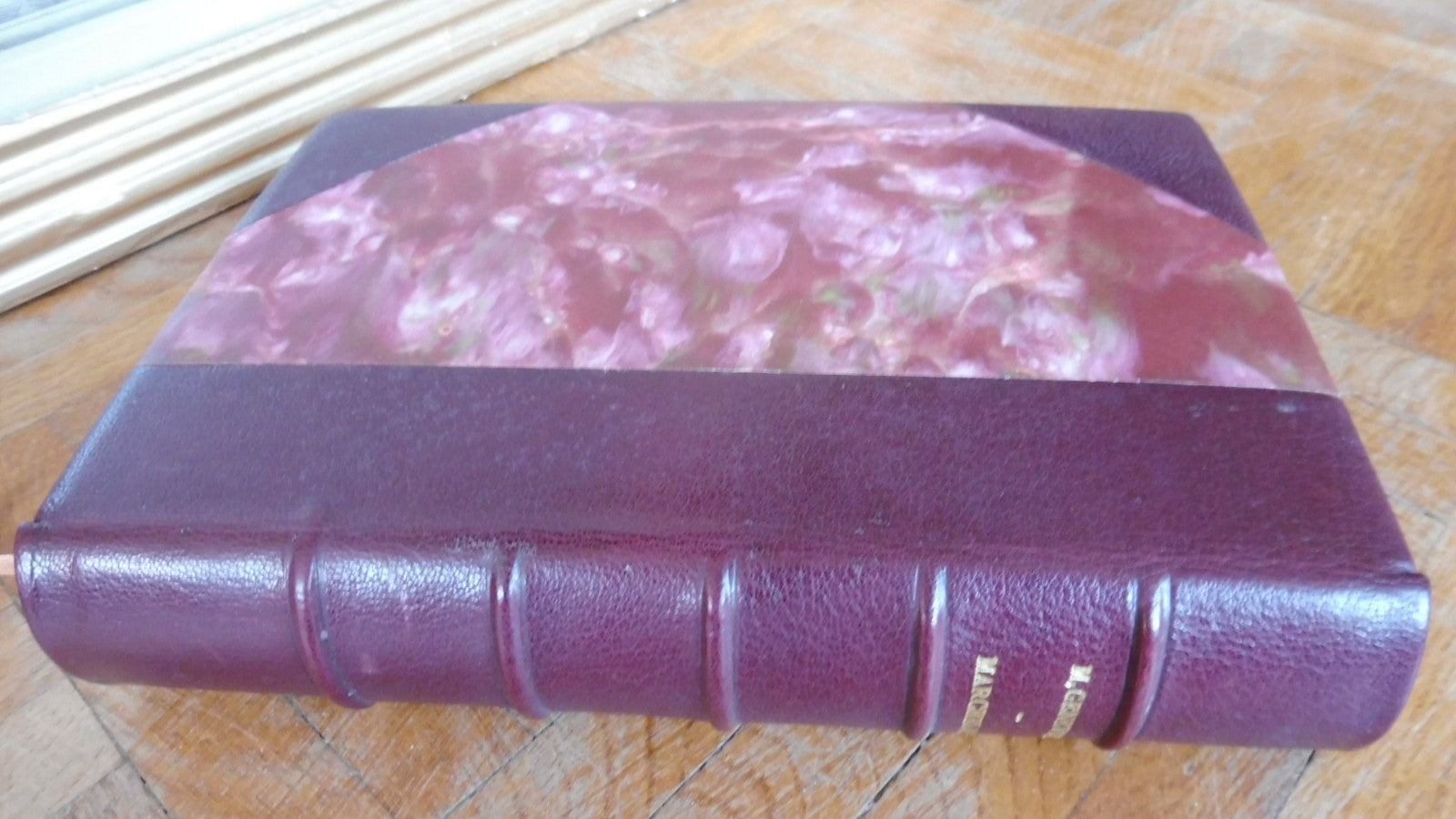 Demi chagrin à 5 nerfs et coins. Reliure en bel état général. Tranches et intérieur frais. Couverture conservée.