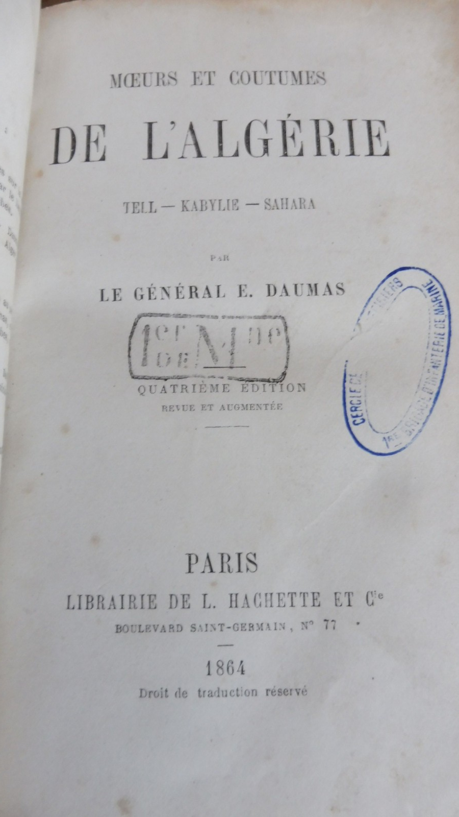 Moeurs et coutumes de l'Algérie. Tell, Kabylie, Sahara (Daumas) 1864