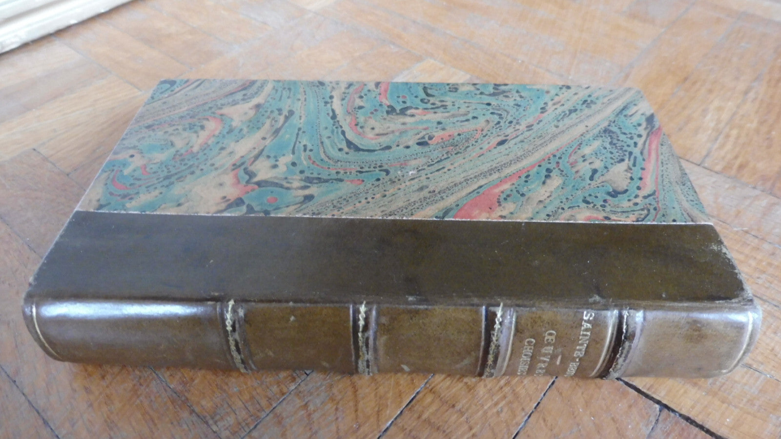 Demi veau à 4 nerfs. Dos, coiffe et mors corrects, menues épidermures. Plats en bel état. Tranches et intérieur frais. Couverture conservée.