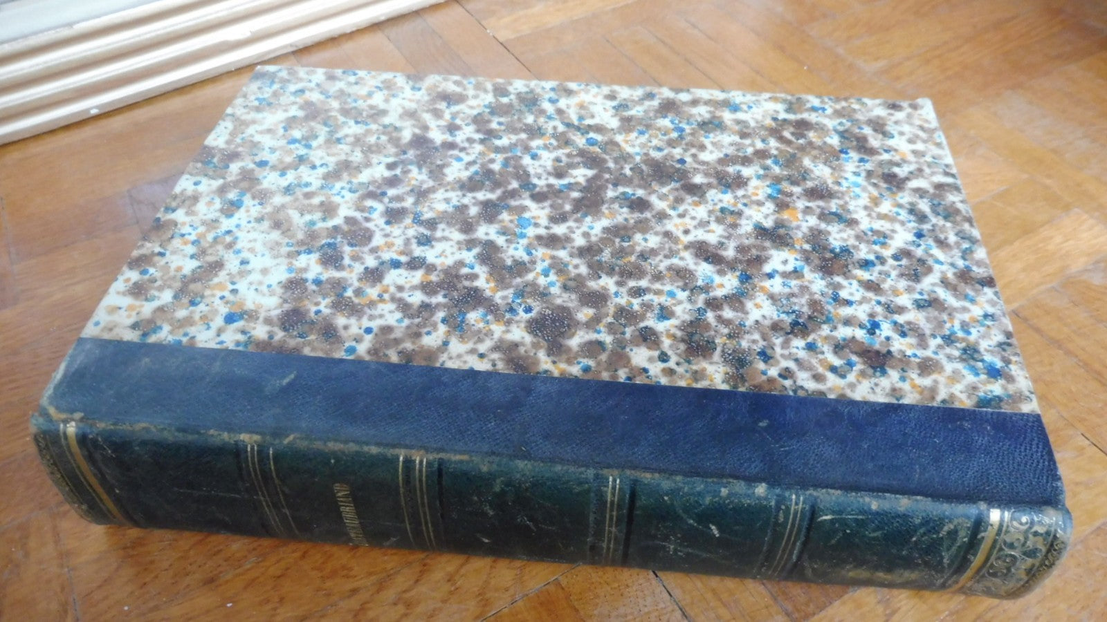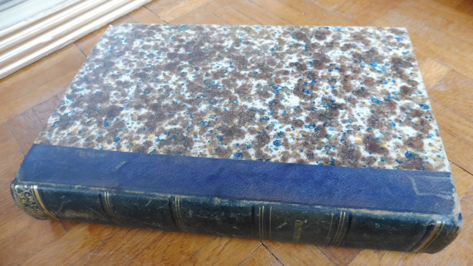 Demi cuir à dos lisse. Dos correct, insolé, frottements. Coiffe frottée, débuts de fentes. Mors corrects. plats frottés. Tranches passées. Rousseurs.