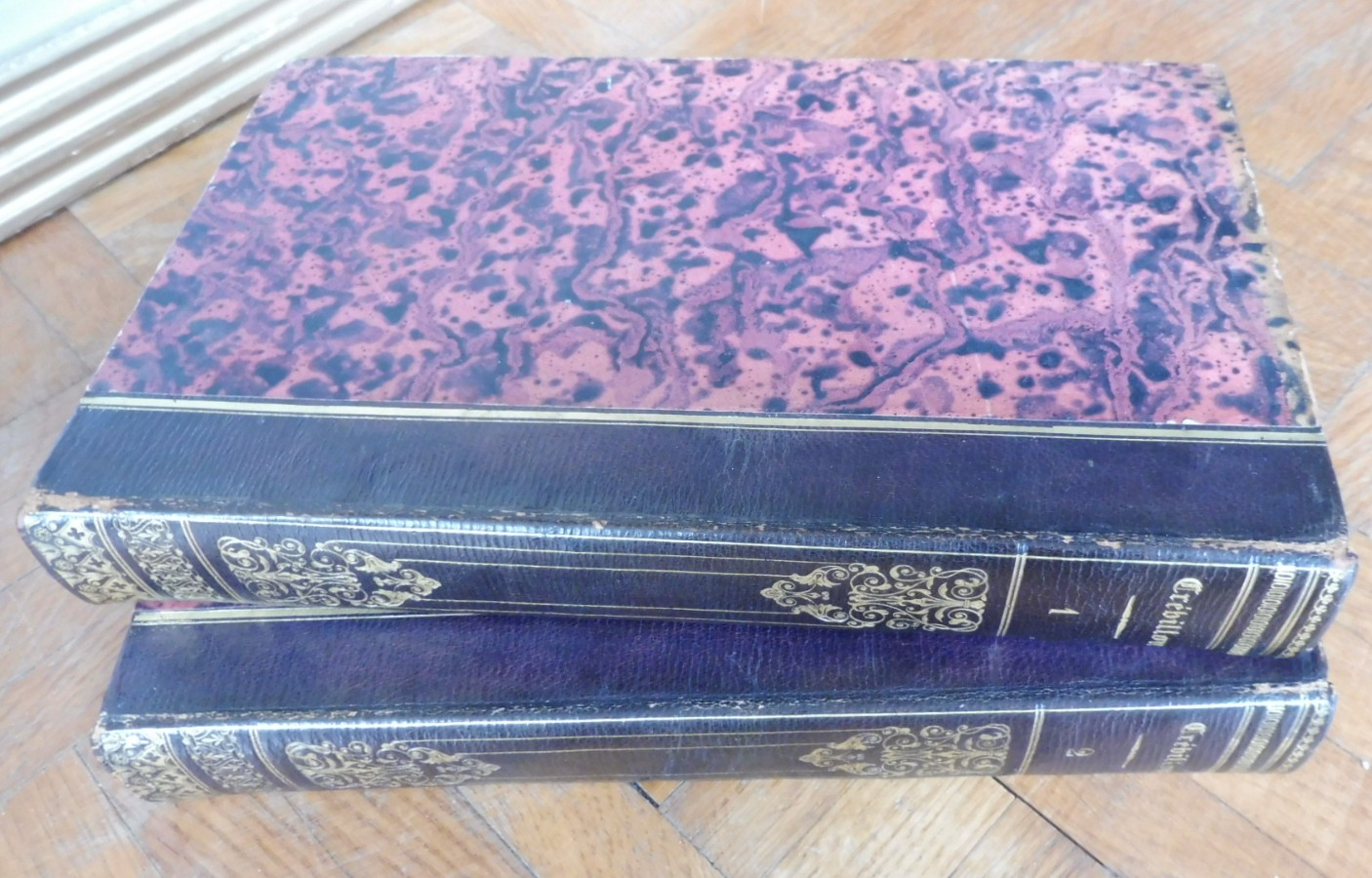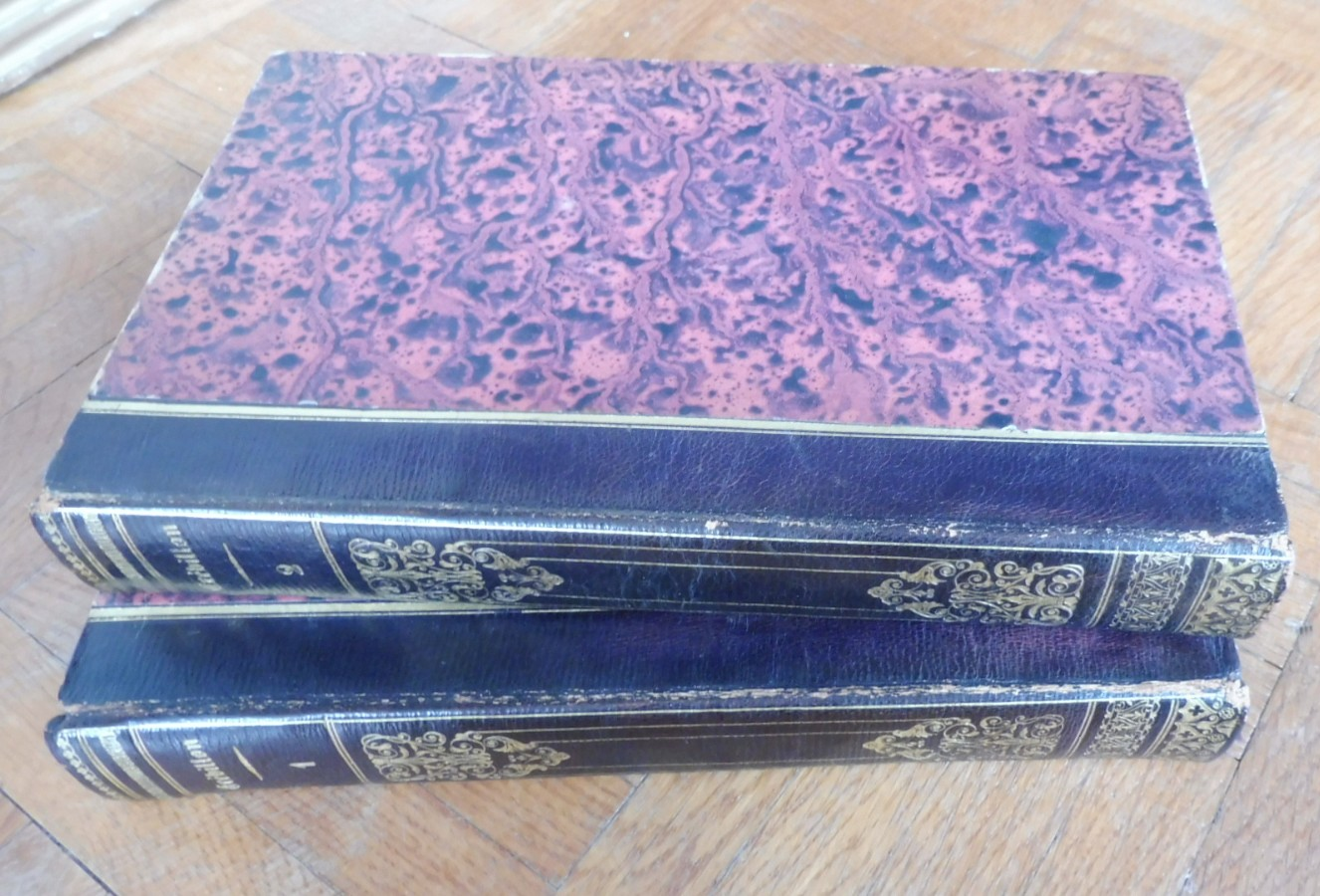 Demi cuir à dos lisse. Dos ornés, menues épidermures. Coiffes correctes. Mors frottés. Plats corrects, frottés aux bords. Tranches marbrées. Rousseurs. Portrait au t.1 et 9 gravures au total, d'après Moreau.