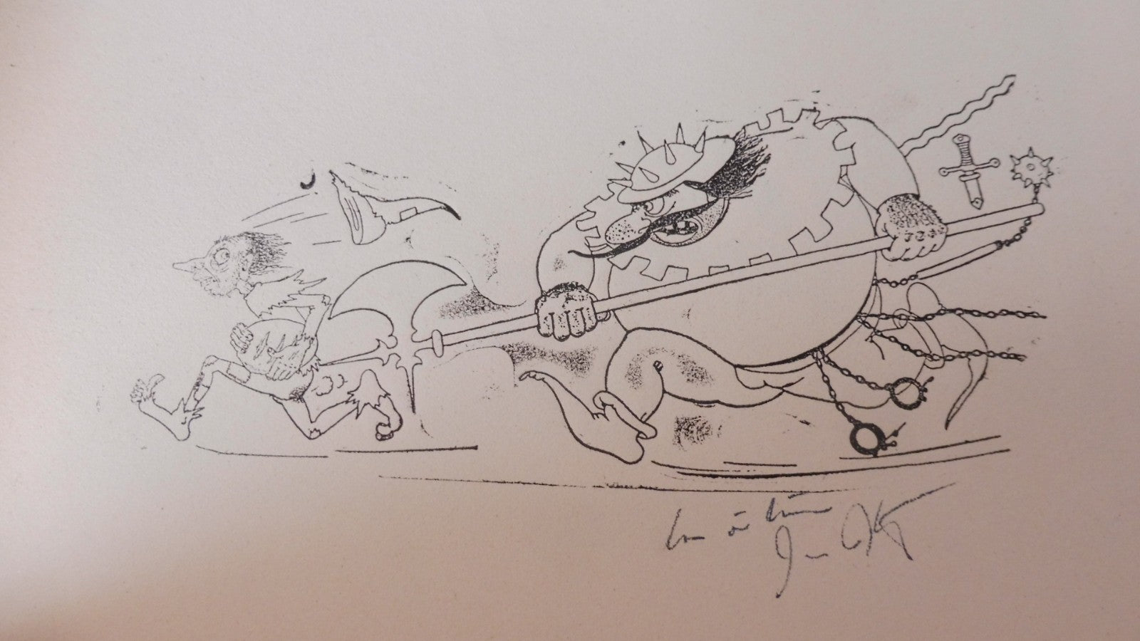 Relié à la suite : suite en N&B + 1 bon à tirer signé par l'illustrateur.