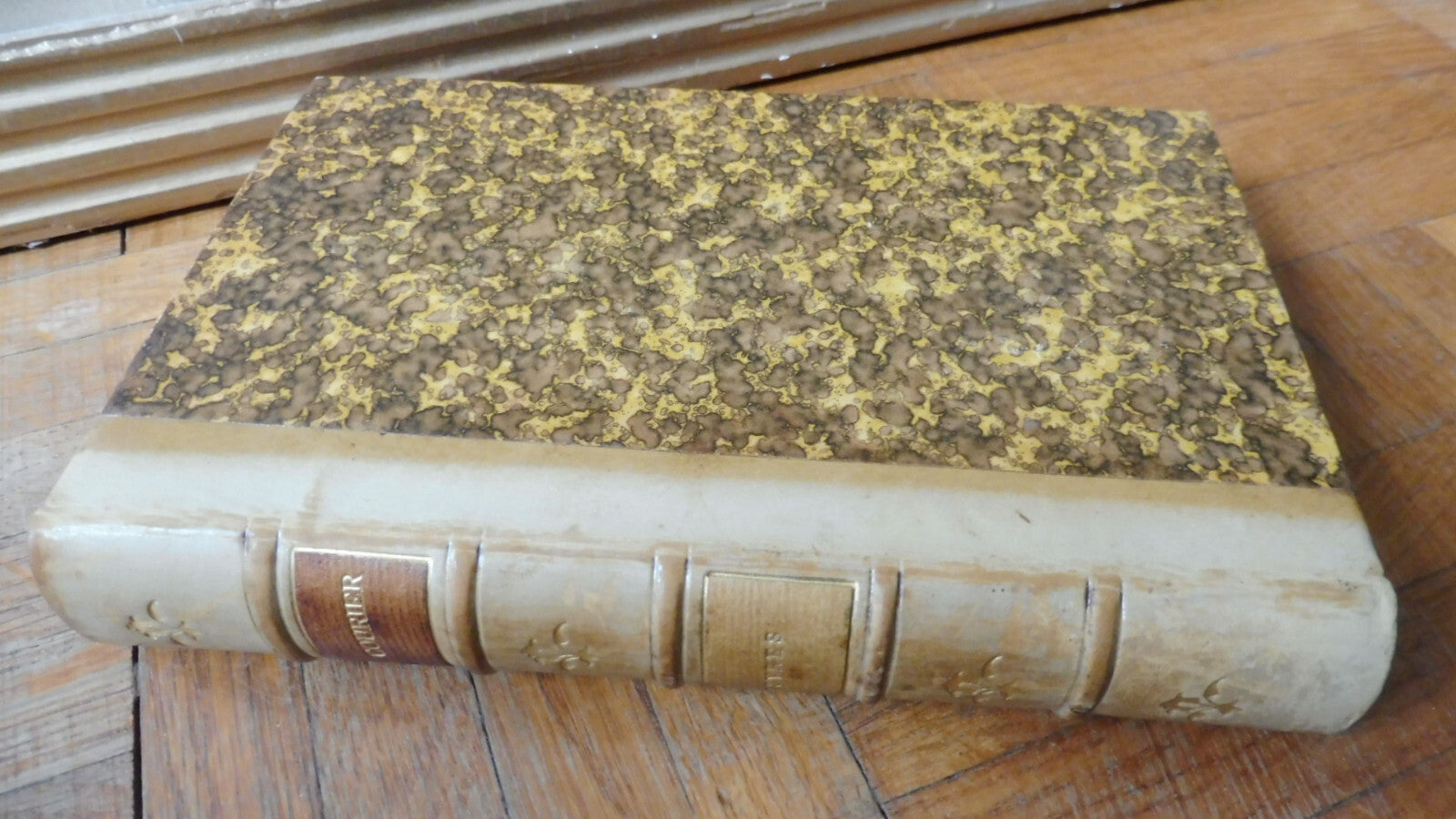 Demi veau glacé. Dos à 5 nerfs et pièces de titre, correct, menues épidermures. Plats propres. Tranches marbrées. Intérieur assez frais. Frontispice.