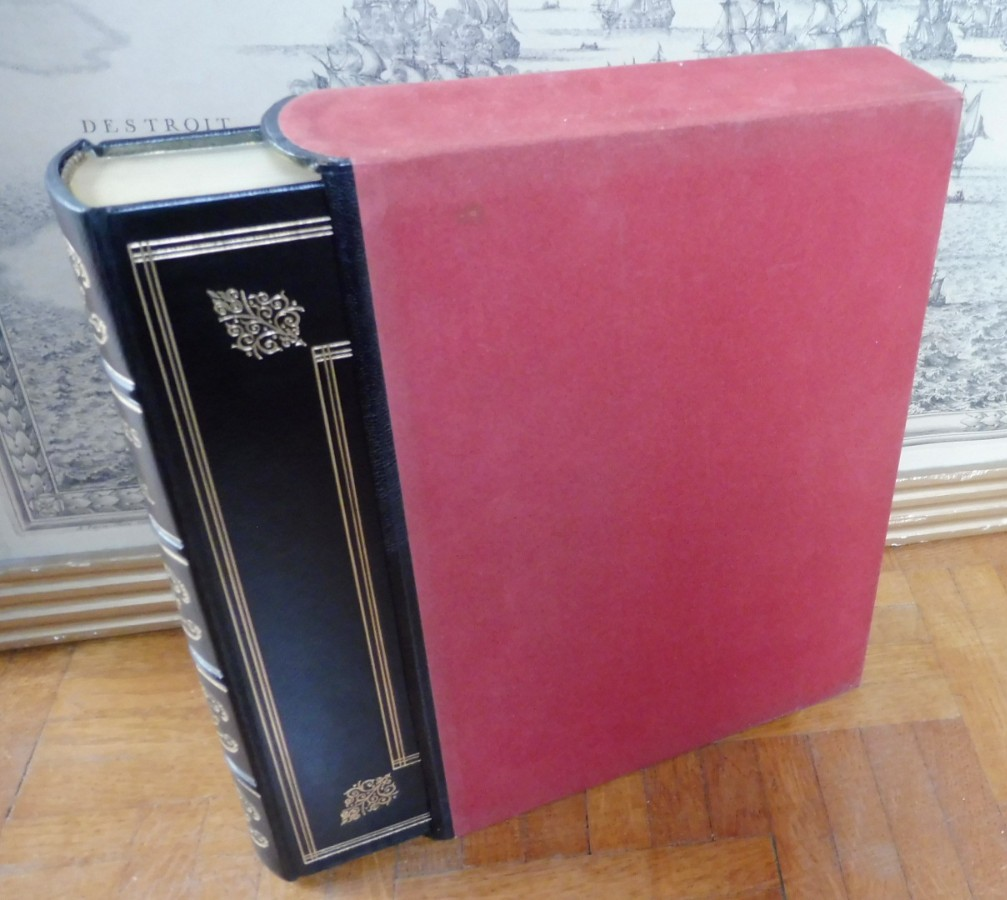 Plein cuir à 4 nerfs, bel état général. Dos orné, bel état. Coiffe et mors en bel état. Plats ornés, idem. En étui carton bordé cuir d'origine, bel état. Intérieur très frais. Tête dorée.