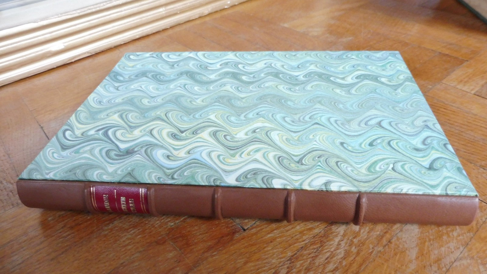 Couverture à plats rapportés, dos cuir et pièce de titre, bel état général. Tranches passées. Intérieur correct. Couverture conservée.